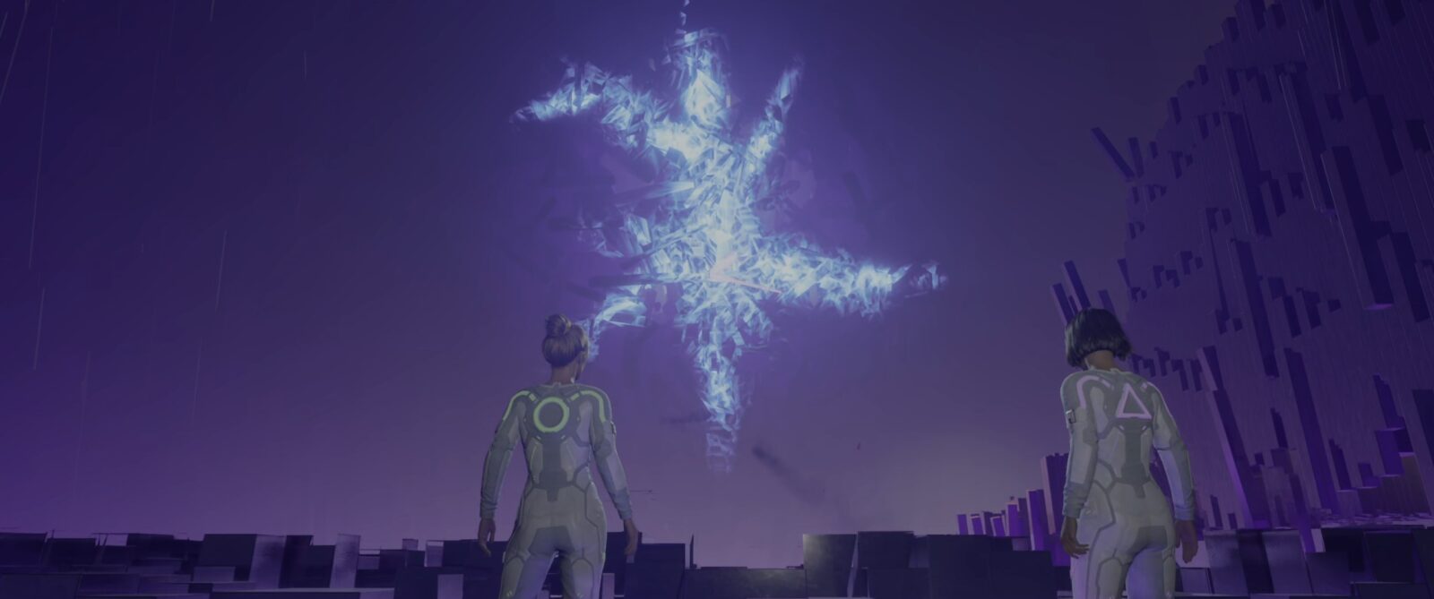Każde włączenie gry Split Fiction wymaga wybrania, czy chcemy zacząć przygodę od konkretnego rozdziału, czy po prostu ją kontynuować i który pad (lub klawiatura i myszka) kontroluje daną postać. Dzięki temu możemy wcielać się w dowolną z dwóch postaci przy każdym uruchomieniu gry, choć w praktyce ciężko uzasadnić taką żonglerkę bohaterkami przy pierwszym przejściu. Z drugiej strony nie dostrzegam też większego sensu zbyt szybkiego przechodzenia gry dwukrotnie, ale inną postacią, bo choć gameplay różni się między nimi, to drastyczne różnice pojawiają się zbyt rzadko, aby uzasadnić to samą ciekawością. W praktyce bowiem większość sekwencji stawia przed graczami podobne wyzwania, ale w nieco innej kolejności, a że widzimy drugiego bohatera w akcji na tym samym ekranie, to wiemy, czego możemy się po nim spodziewać.