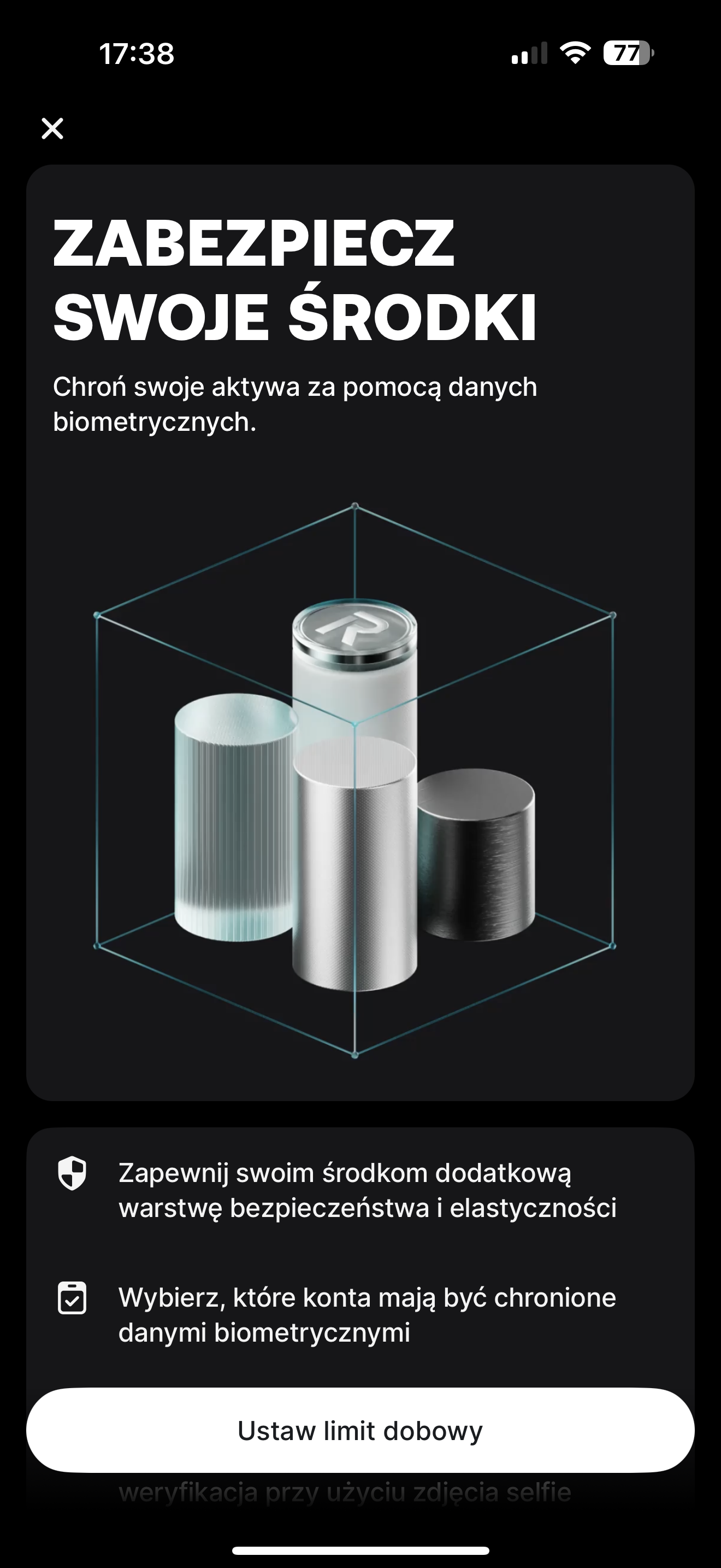 Ostatnią z nowości wpływających na bezpieczeństwo jest możliwość wprowadzenia dziennych limitów transakcji dla konta oraz niezależnie dla poszczególnych usług. Po przekroczeniu dozwolonego limitu każda kolejna transakcja będzie musiała być weryfikowana biometrycznie i tu uwaga – odbywa się to za pośrednictwem systemów Revolut, a nie lokalnymi mechanizmami w smartfonie.