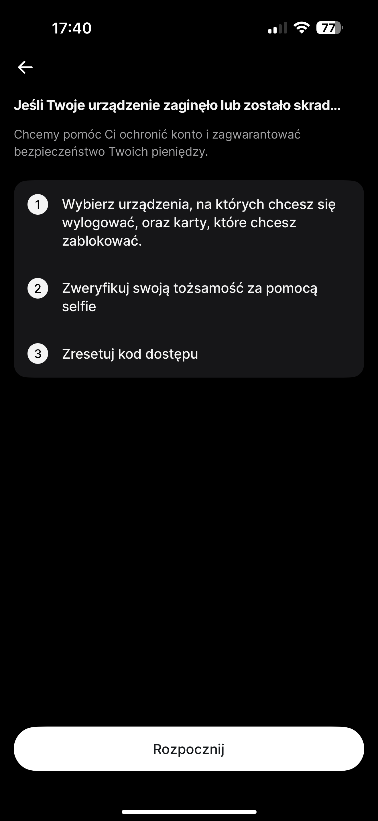 Wraz z ostatnimi aktualizacjami pojawiły się nowe funkcje bezpieczeństwa. Jedną z najważniejszych jest zabezpieczenie na wypadek utraty smartfonu z zainstalowaną aplikacją. Prawdopodobieństwo powstania szkody jest co prawda niewielkie – płatności zbliżeniowe są chronione kodem lub biometrycznie, podobnie jak dostęp do aplikacji, ale po co kusić los? W przypadku zagubienia lub kradzieży telefonu można otworzyć aplikację na innym urządzeniu lub zalogować się do swojego konta poprzez stronę internetową, aby zgłosić utratę urządzenia – w tym przypadku aplikacja na nim zostanie zablokowana, a możliwość wykonywania płatności zablokowana.