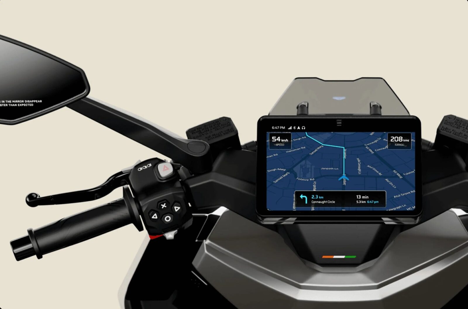 Ten elektryczny motocykl prosto z Indii ustanawia nowy standard w swojej klasie, dzierżąc zintegrowane systemy radarowe i tak zwane omnisense mirrors. Te ostrzegają przed martwymi polami, wspierają kierowcę podczas zmiany pasa oraz wykrywają potencjalne kolizje w czasie rzeczywistym. Skuter ten dodatkowo posiada dwie kamery (przednia i tylna), kontrolę trakcji, asystenta ruszania na wzniesieniu oraz system dynamicznej stabilizacji, więc bezpieczeństwo potraktowano w jego przypadku bardzo poważnie.