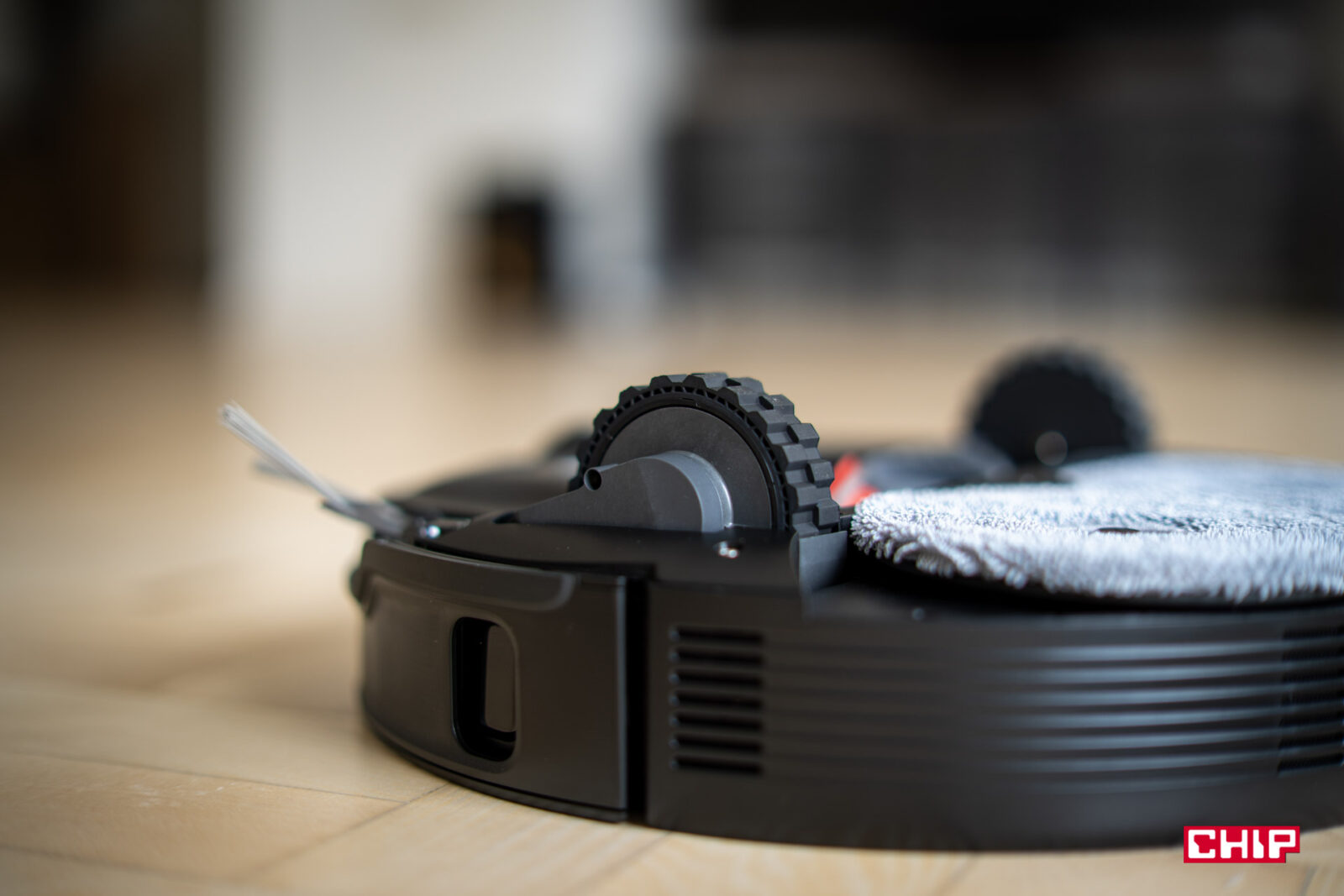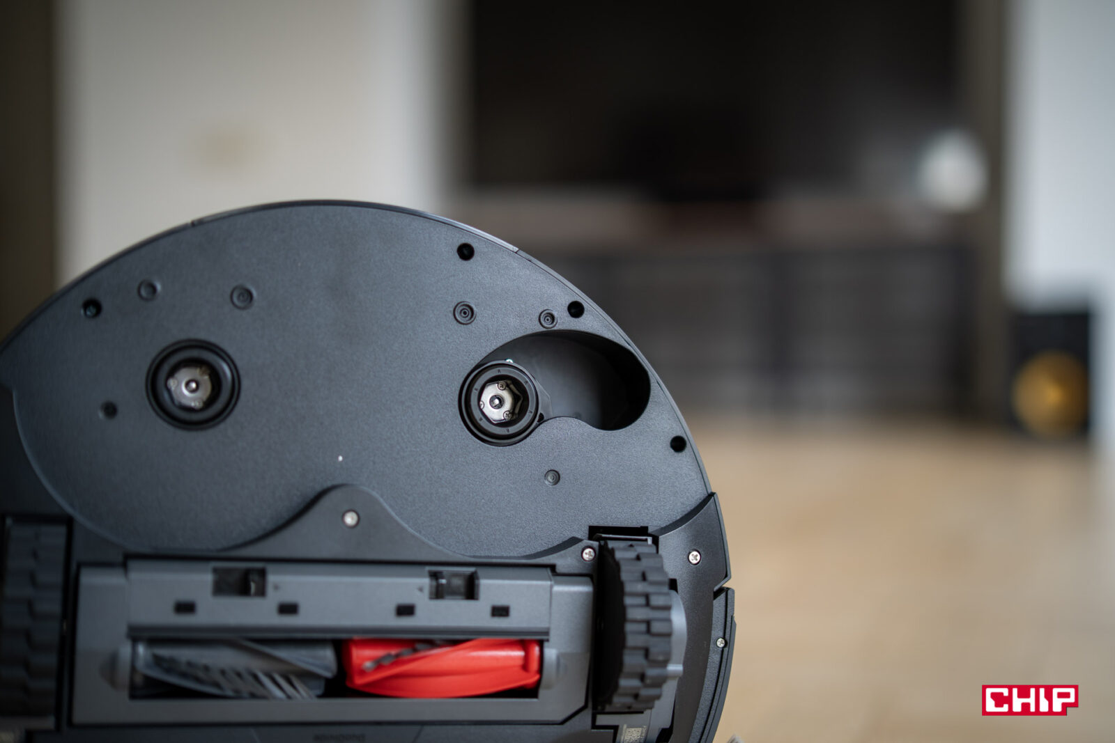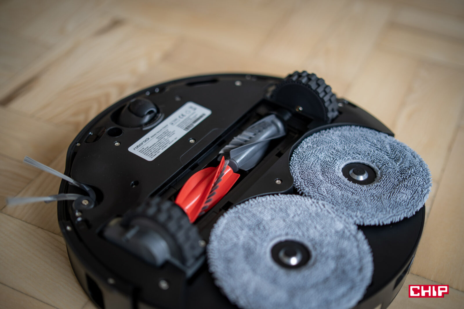 Oczywiście nie musimy się bać o to, czy podkładki mopujące zamoczą dywan, albo czy szczotki zamoczą się kiedy każemy robotowi zebrać rozlany płyn z podłogi. Jedne i drugie potrafią być, w razie potrzeby, automatycznie unoszone w trakcie pracy. Oczywiście jeśli wybierzemy tylko odkurzanie, bez mopowania, robot zostawi podkładki w stacji dokującej.