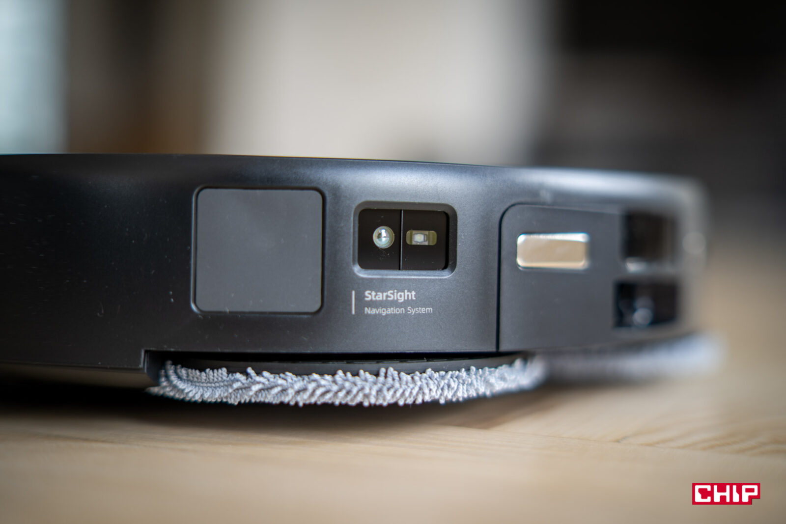 Skoro nie mamy czujników na górze robota, to w takim razie jak wygląda poruszanie się czy rozpoznawanie terenu? Cóż… dosłownie normalnie i to zasługa systemu StarSight 2.0. Czujniki, które znajdują się zazwyczaj w tej wystającej części na górze robota są umieszczone na jego przodzie oraz w bocznej części. Dzięki temu robot nie ustępuje orientacją w terenie innym sprzętom o klasycznej budowie. Dla zobrazowania, stworzenie mapy naszego biura, w którym mamy naprawdę sporą powierzchnię, bo według pomiarów robota to 126 mkw, trwało 18 minut.