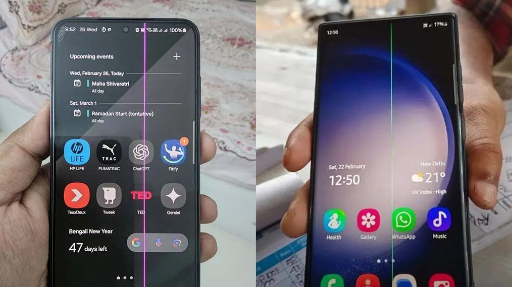 Właściciele Galaxy S23 i S23 Ultra skarżą się na zieloną i różową linię na wyświetlaczu