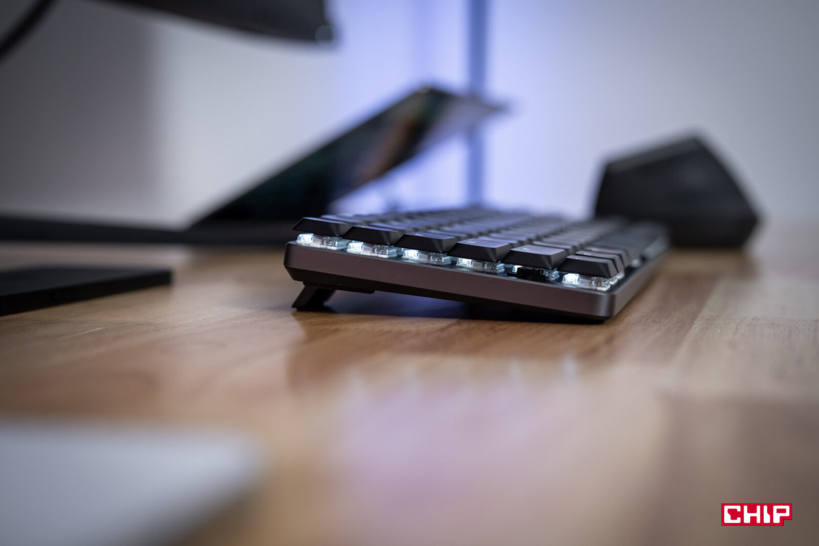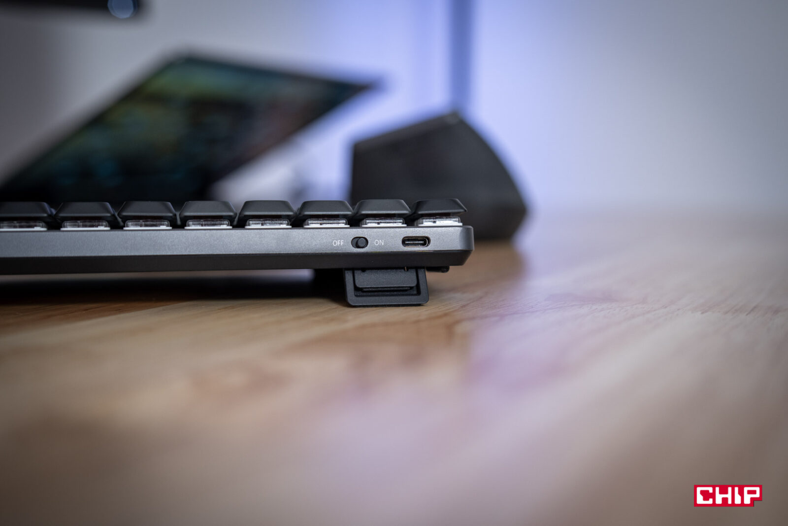 W razie potrzeby do dyspozycji mamy 2-stopniową regulację nachylenia w postaci najbardziej możliwych, klasycznych rozkładanych nóżek. Z nimi czy bez, bardzo dobra stabilność klawiatury pozostaje bez zmian.