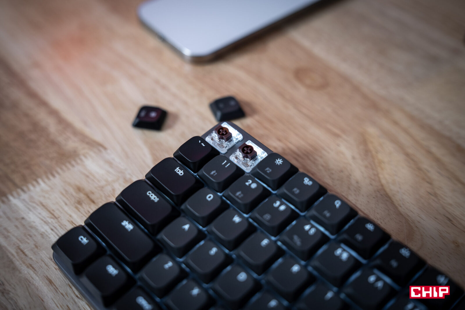 Testowany egzemplarz był wyposażony w brązowe przełącznik i choć nie jestem ich wielkim fanem, okazały się zaskakująco wygodne. Mam z nimi taki problem, że sprawiają wrażenie wręcz mułowatych. Brakuje mi wyraźnego sprężynowania w trakcie pisania, jakie mają np. przełączniki niebieskie. Ale w połączeniu z niskim skokiem pisanie na Satechi SM1 jest bardzo przyjemne i nieporównywalnie wygodniejsze, niż w przypadku tradycyjnych klawiatur mechanicznych z brązowymi przełącznikami. Przede wszystkim pisze się o wiele szybciej i klawiatura sprawia wrażenie o wiele bardziej dynamicznej. Klawisze wydają charakterystyczny dla brązowych przełączników, nieco plastikowy dźwięk, choć muszą przyznać, że klawiatura jest dosyć głośna i w otoczeniu biurowym czy wieczorem w domu może być uciążliwa dla otoczenia. Więc to raczej wybór dla osób, które pracują samodzielnie.