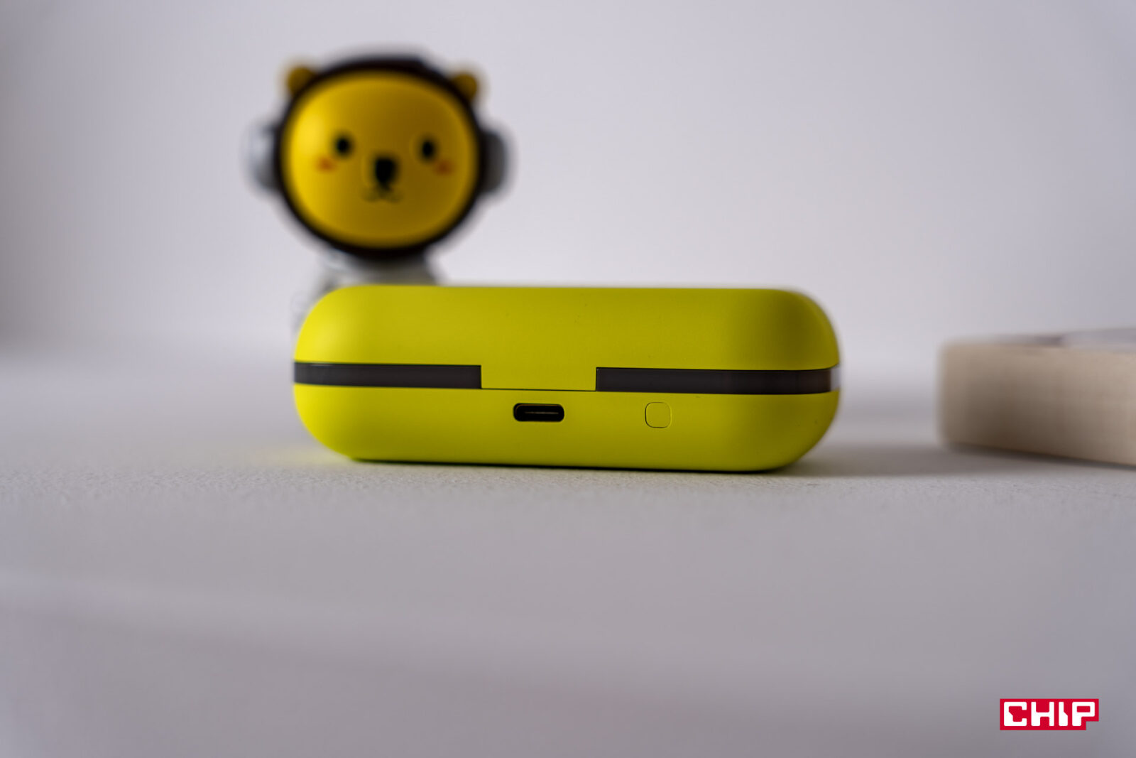 Małe wymiary nie oznaczają wcale krótkiego czasu pracy. Na pojedynczym ładowaniu słuchawki są w stanie pracować ok. 4 godzin, a etui ładujące wystarcza na pięć pełnych cykli ładowania. Energię etui uzupełniamy przez port USB-C.