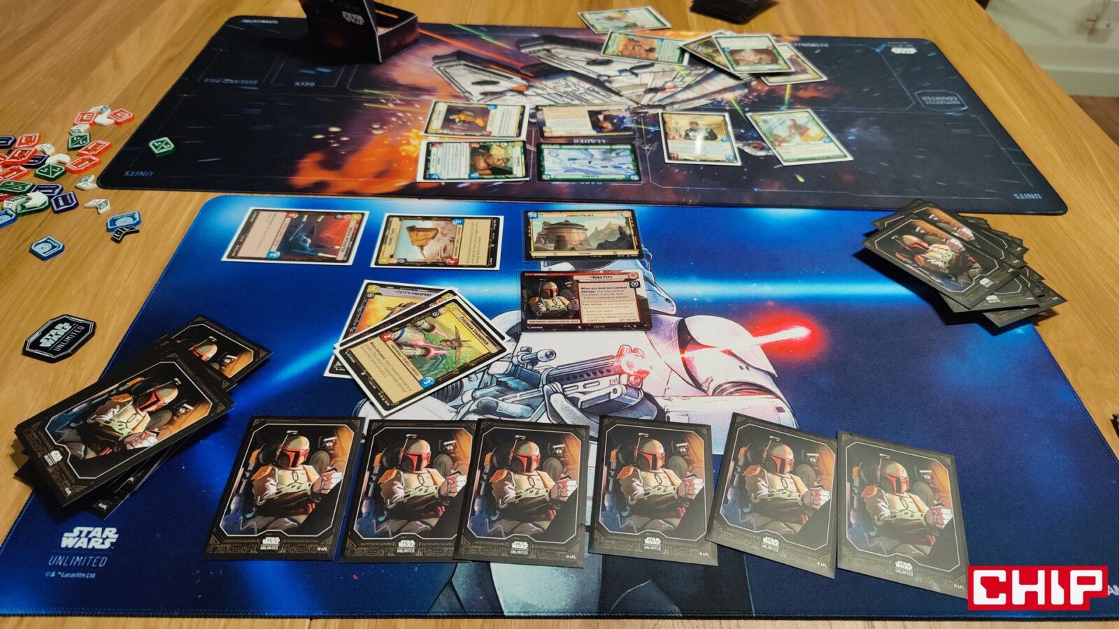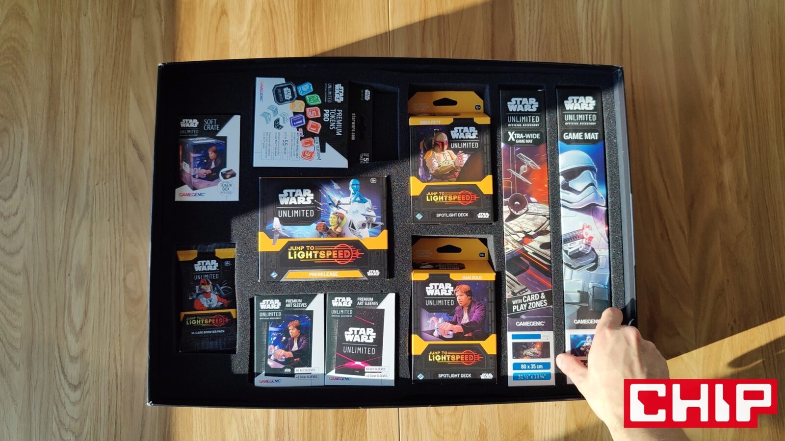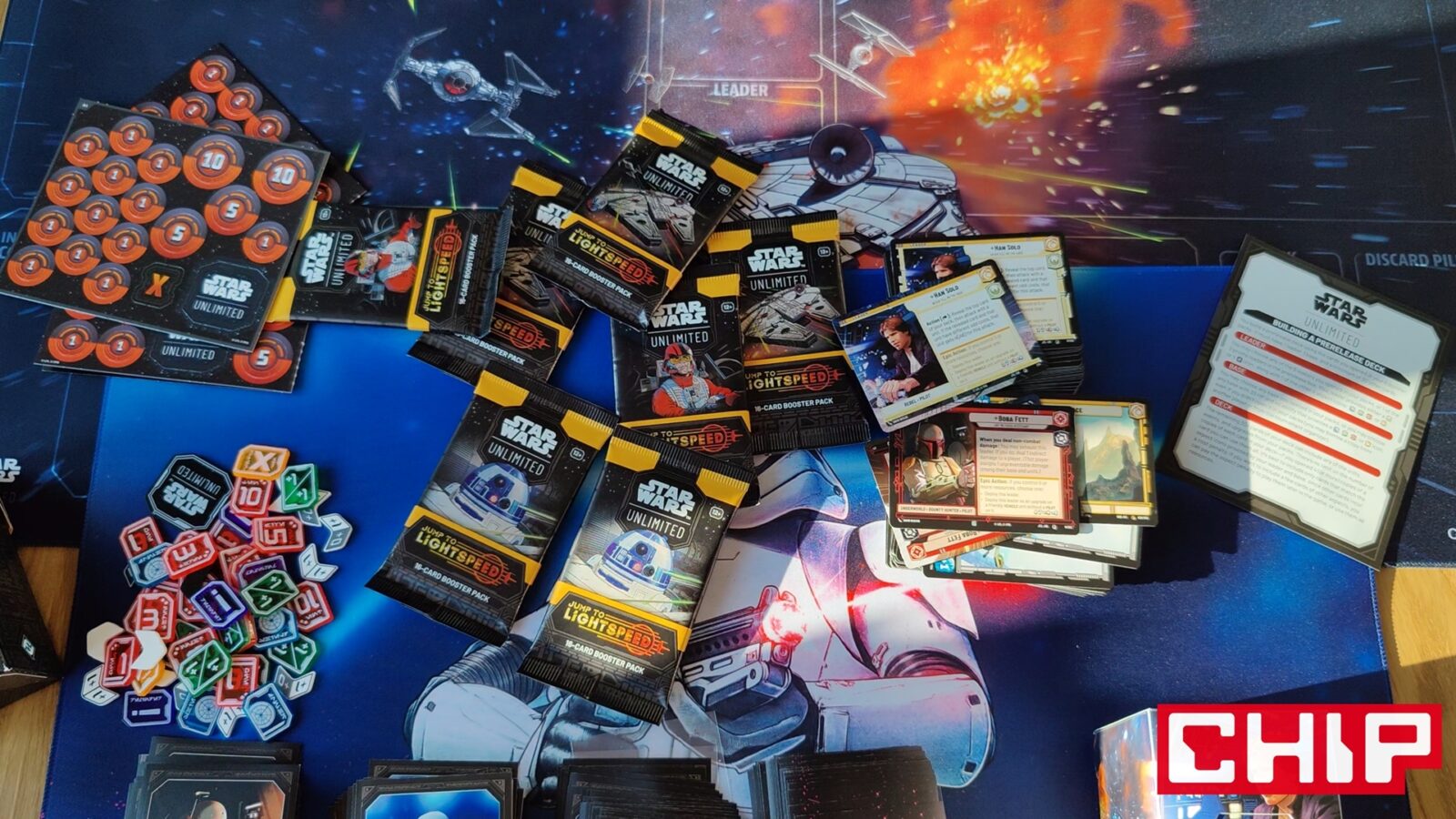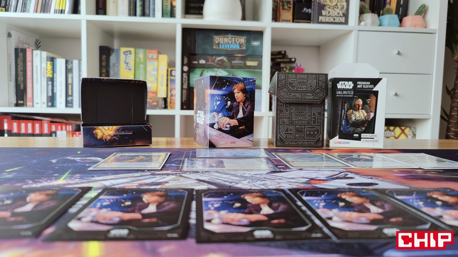 Specjalne pudełka, cała masa kart o różnej jakości i w specjalnych wariantach, a do tego ładne akrylowe żetony, fenomenalne koszulki zdobione grafiką na tyle i nawet specjalne plansze. Na zdjęciach powyżej widzicie nie byle podstawowy zestaw konieczny do rozpoczęcia zabawy w Star Wars: Unlimited, a specjalny press-kit, którego wydawnictwo Rebel rozesłało tylko sześciu osobom w Polsce. Innymi słowy, zaczynałem zabawę w tę karcianą grę kolekcjonerską “na wypasie”, ale od razu was uspokoję – to tylko dodatki niewymagane do gry. Przydatne, ładnie wykonane i uprzyjemniające całą rozgrywkę, ale dosyć drogie, jak na początek przygody.