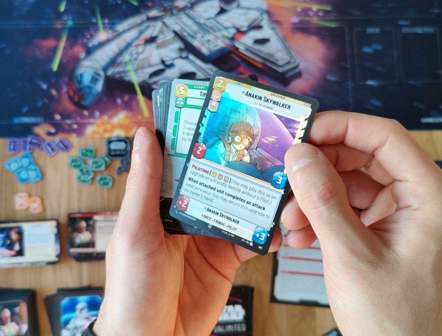 Zaczęło się od smoków zbieranych z paczek chipsów w podstawówce, później przyszedł czas zagrywania się w Hearthstone, a finalnie zaangażowania się w wiedźmińskiego Gwinta na tyle, że zacząłem pisać do niego poradniki. Między tymi etapami było jeszcze kilka kolekcjonerskich karcianek, które mnie na chwilę zainteresowały, ale wraz z wejściem w dorosłość zapomniałem o tym gatunku gier na dobre. Gatunku wręcz wyjątkowym, bo daje on ogrom radości zarówno na etapie budowania talii, jak i sprawdzania jej w praktyce przeciwko kompletnie nieznanym taliom innych graczy. Nie miałem też nigdy kolekcji fizycznych kart z pierwszego zdarzenia, które regularnie przypominałyby mi o tych grach, ponieważ tylko cyfrowe formaty miały sens – głównie ze względu na brak innych graczy karcianek wśród moich znajomych… aż tu niespodziewanie lata beztroski przypomniała mi gra Star Wars: Unlimited.