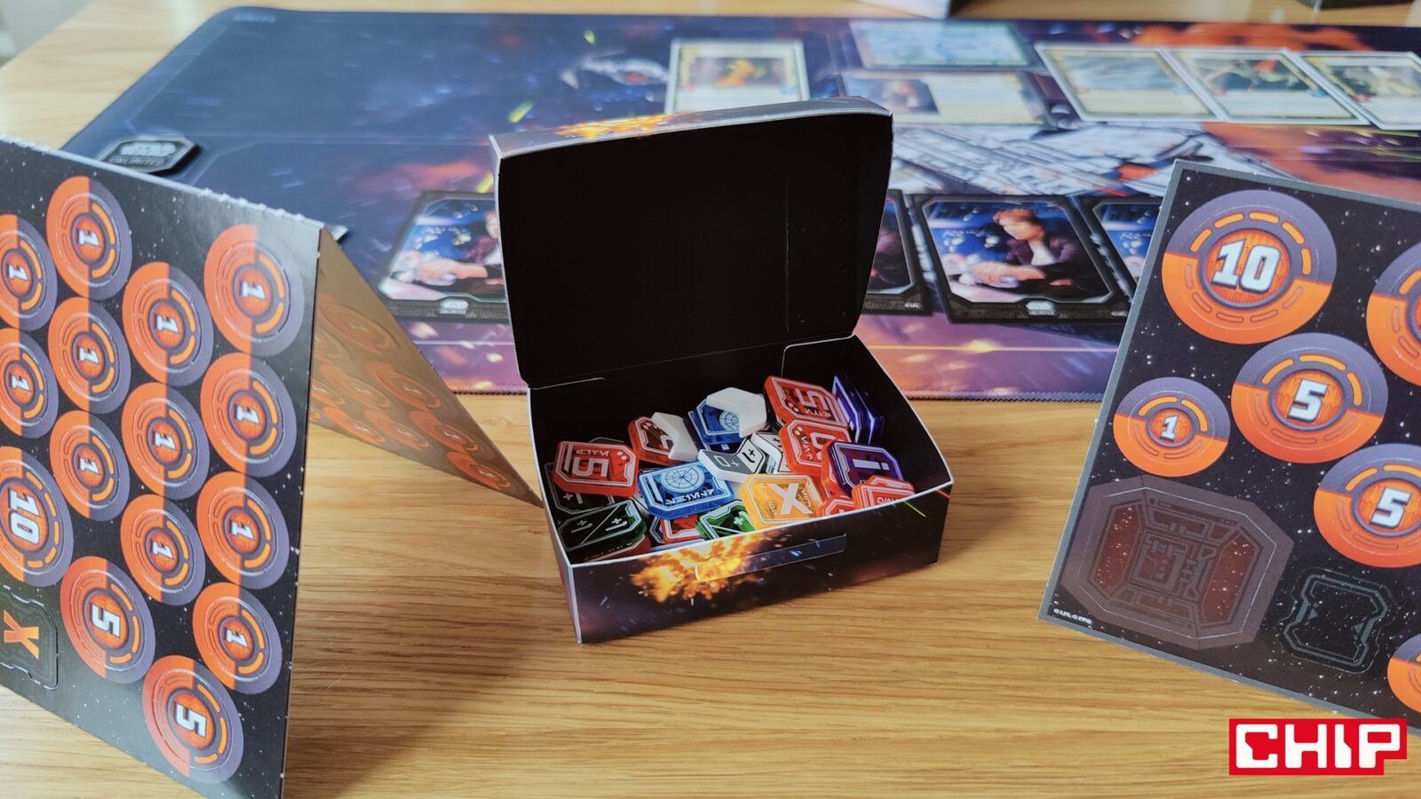 Przyznam jednak, że jakość podstawowych kartonowych żetonów obrażeń i konieczność wykorzystywania kart w roli tarczy czy “doświadczenia”, to katorga w porównaniu do tego, jak znacznie łatwiej żongluje się w grze akrylowymi odpowiednikami dostępnymi za stówkę.
