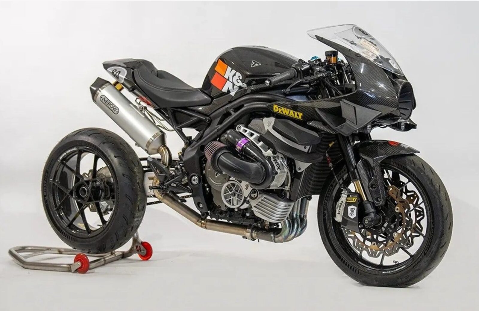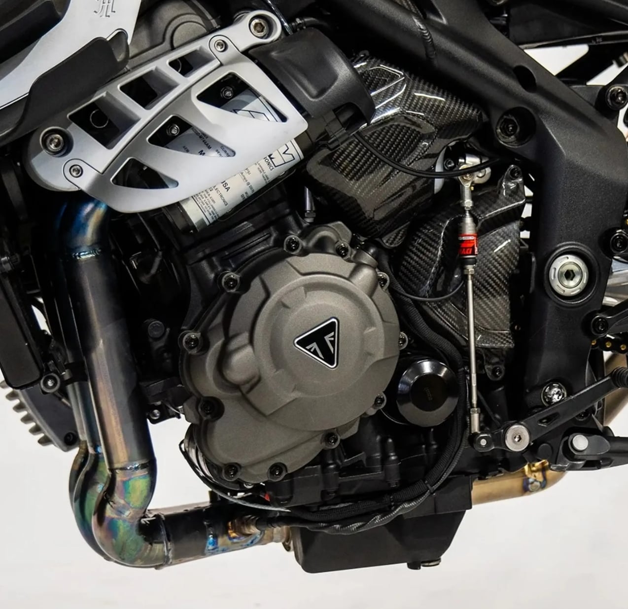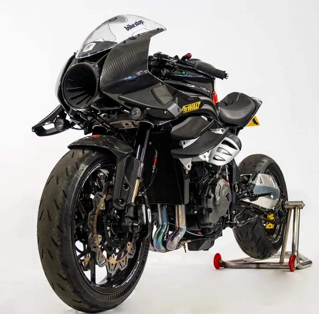 Punktem wyjścia dla Supercharged Speed Triple RR był Triumph Speed Triple 1200 RR, a więc motocykl ceniony za swój mocny, bo trzycylindrowy silnik o pojemności 1160 cm³, który generuje w podstawowej konfiguracji 177 KM i 125 Nm momentu obrotowego. Standardowo jest wyposażony bardzo bogato, bo w półaktywne zawieszenie Öhlins Smart EC 2.0 oraz monoblokowe zaciski hamulcowe Brembo Stylema z podwójnymi tarczami 320 mm, dzięki czemu już w fabrycznej wersji oferuje zwinność i kontrolę na wysokim poziomie.
