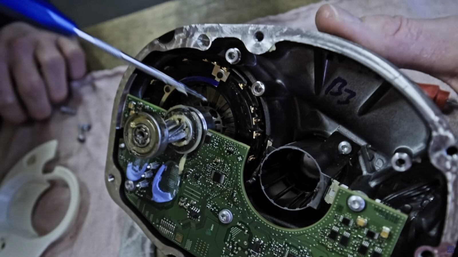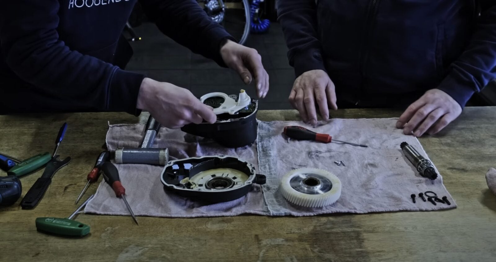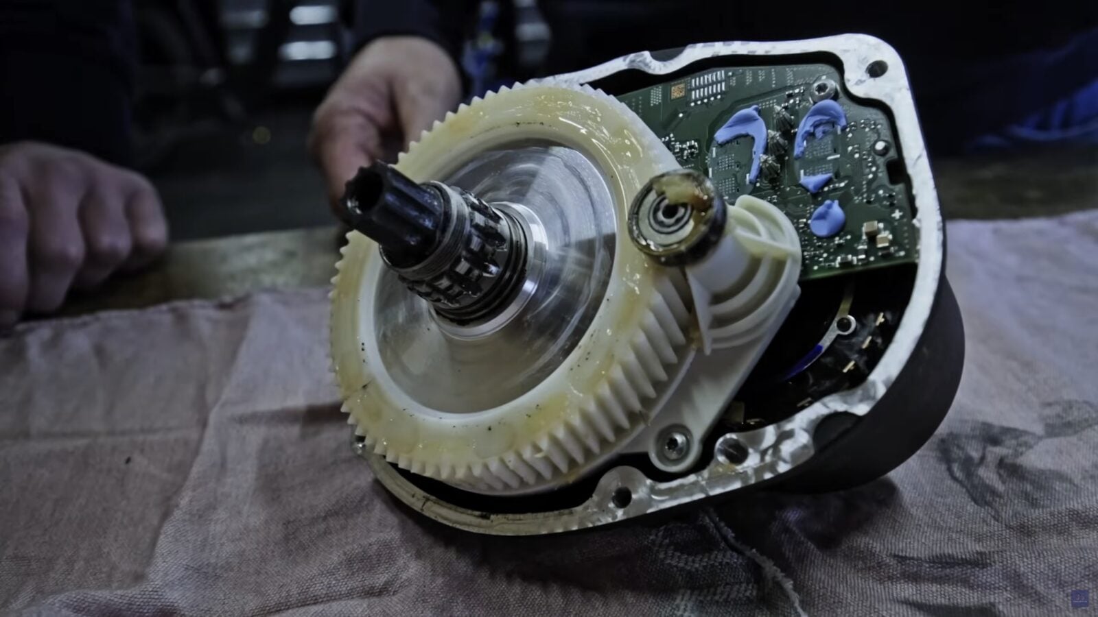 Przy użyciu podstawowych narzędzi (wkrętarki akumulatorowej, klucza Torx-25 oraz śrubokręta płaskiego) eksperci rozebrali obudowę silnika, zdejmując w procesie plomby gwarancyjne i wtedy ujrzeli… zaskakująco minimalne zużycie elementów. Łożyska, kluczowe dla płynności działania każdego układu mechanicznego, obracały się swobodnie, a główne koło zębate o skośnym zazębieniu wyglądało niemal jak nowe. Podobnie wypadł wał napędowy i podzespoły elektryczne, które nie wykazywały widocznych uszkodzeń ani degradacji. Jedynym drobnym mankamentem był osad z kurzu i zanieczyszczeń wewnątrz obudowy, ale taki osad jest typowy przy regularnym użytkowaniu i nie ma większego wpływu na pracę silnika.