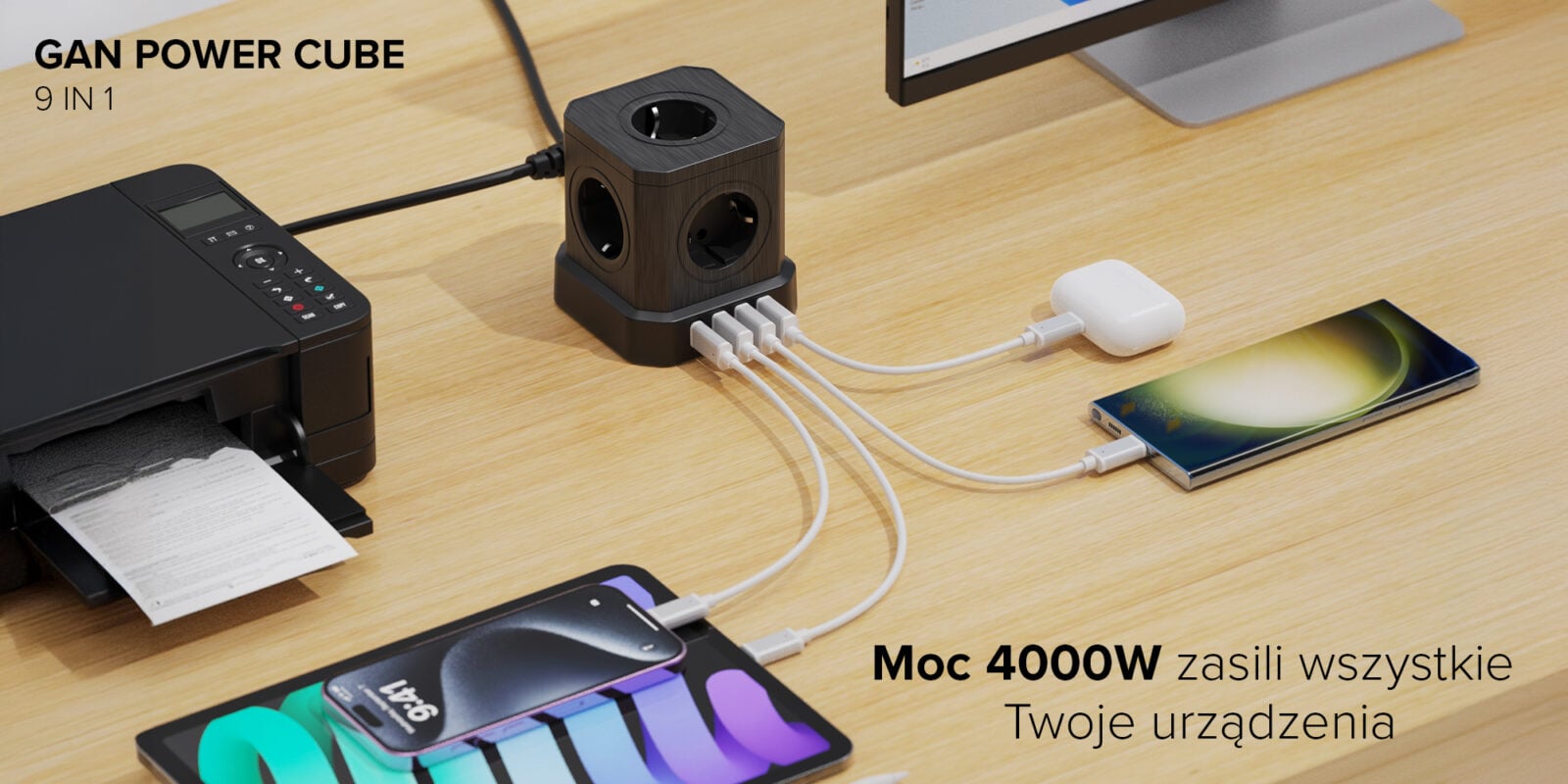 Kostka zasilająca Newell GaN Power Cube 9w1