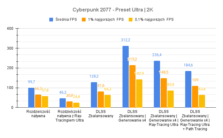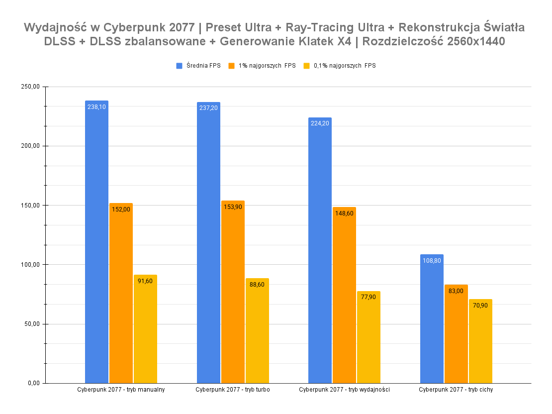 Jeśli idzie o gry, zacznijmy od porównania wydajności w Cyberpunku 2077 zależnie od ustawionego trybu wydajności: