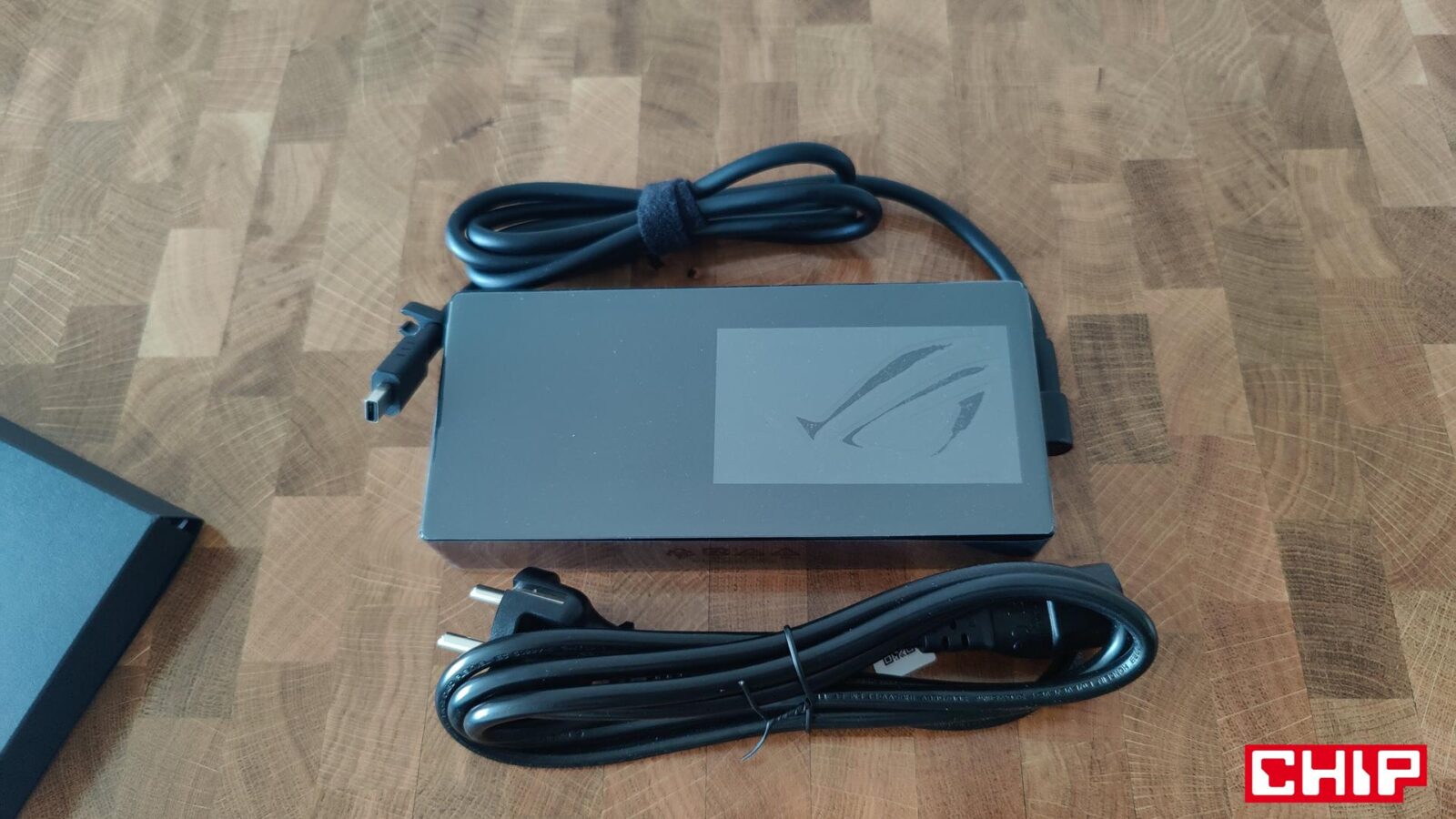Z drugiej jednak strony musimy pamiętać, że nie jest to laptop, którego nabywcy będą regularnie przenosić z miejsca na miejsce. 18-calowy laptop, to przecież już sprzęt znacznie bardziej stacjonarny, a nie coś, po co sięgają regularni bywalcy biura, kawiarni czy po prostu zajęć na uczelni. Jeśli jednak oczekujecie w tym modelu obudowy, która latami będzie znosić trudy życia codziennego, to… no cóż, nie wydaje mi się, że to tutaj znajdziecie, choć oczywiście są to jedynie moje domysły podbudowane zupełnym brakiem metalowej obudowy. O 380-watową ładowarkę/zasilacz nie musicie się z kolei martwić. To wielki (18 × 8 × 3 cm) kloc ważący ponad kilogram z przewodami, z którego musicie korzystać, jeśli chcecie mieć dostęp do pełni możliwości tego laptopa. Awaryjnie możecie jednak skorzystać również z ładowania mocą 100 watów za pośrednictwem jednego z dwóch portów Thunderbolt 5.