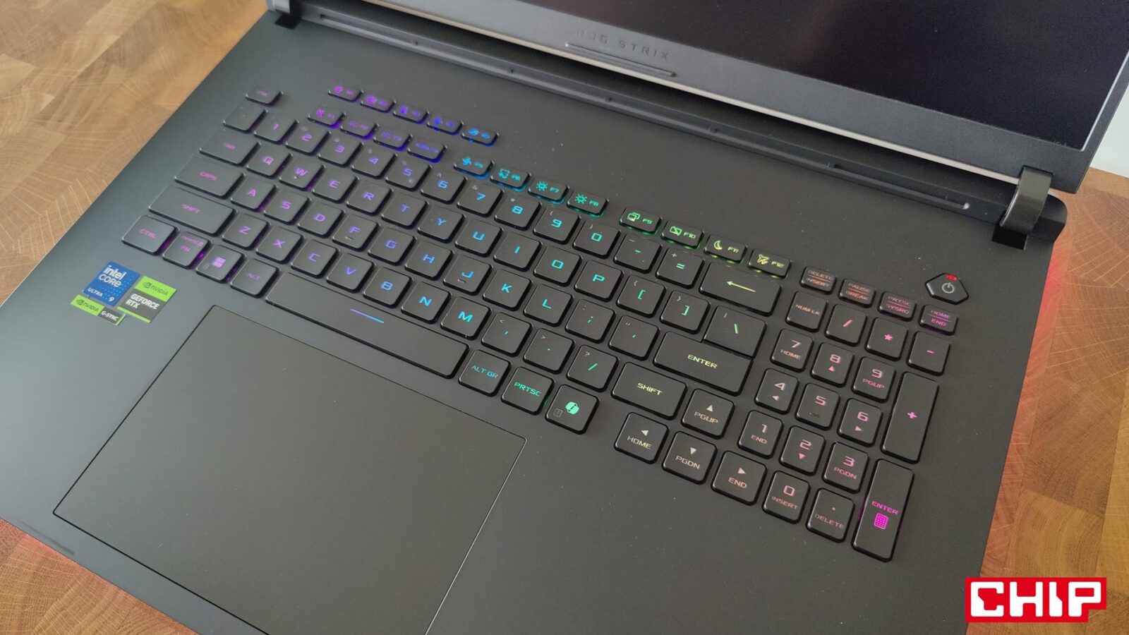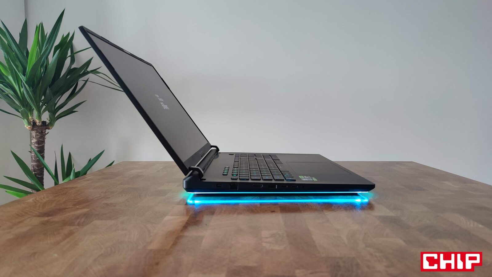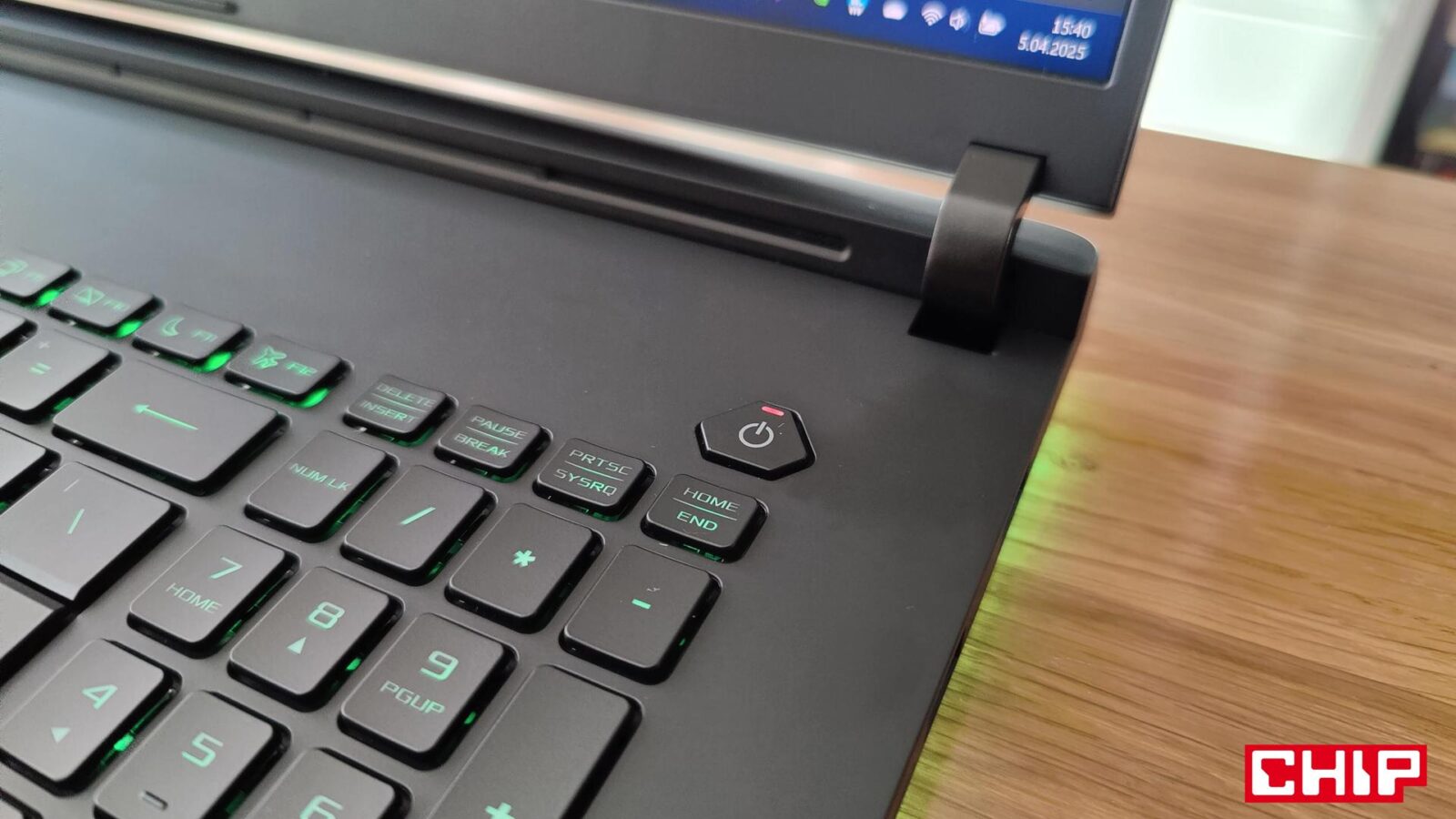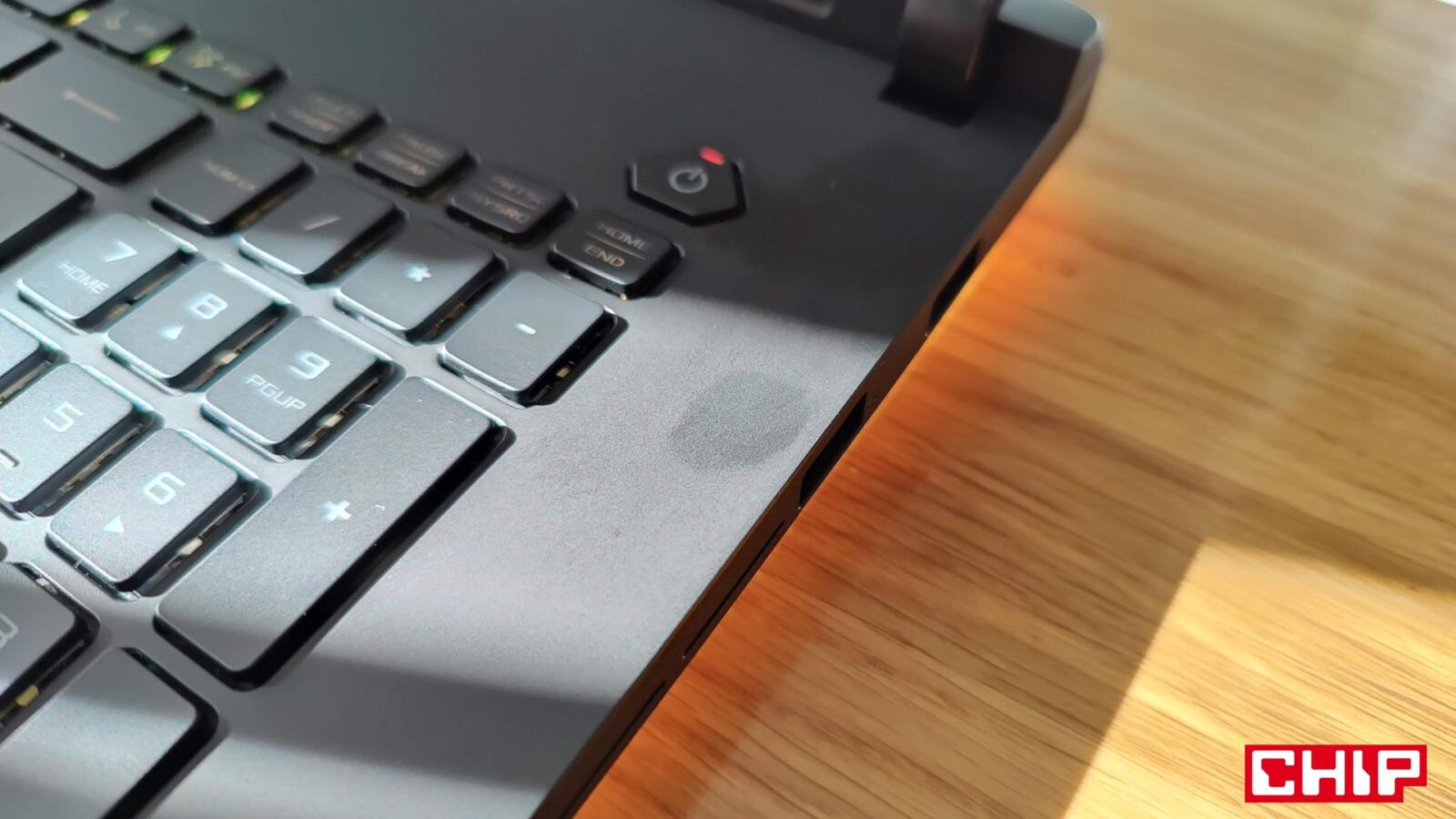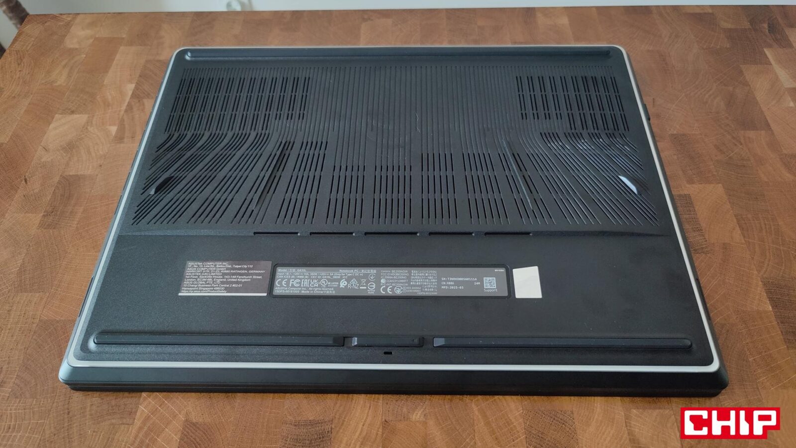 Poza tym możecie liczyć na w pełni podświetlaną klawiaturę niskoprofilową z blokiem numerycznym i pięcioma dodatkowymi przyciskami makr (ładna, wytrzymująca do 20 mln aktywacji, ale niepowalająca systemem aktywacji), większy touchpad względem poprzednich modeli z serii o bardzo gładkiej strukturze i… właśnie wspomniany panel na spodzie pełen perforacji pełniących rolę wlotów chłodnego powietrza (stąd też wysokie i wielkie gumowe podkładki), którego możemy zdjąć w sposób beznarzędziowy. Rewolucja, co nie?