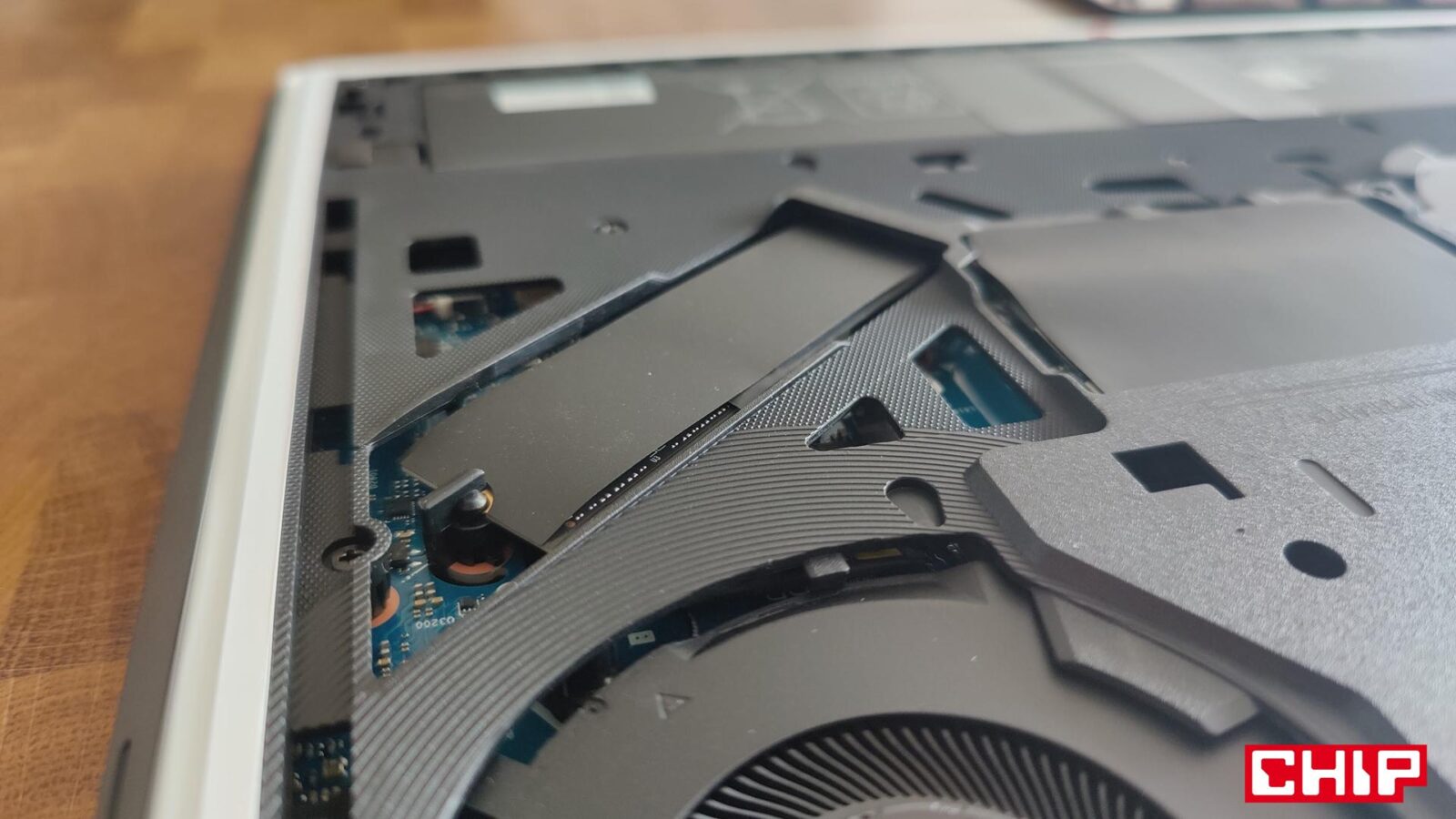 Oba sloty pamięci RAM są bowiem zajęte, dwa sloty na dyski PCIe 4.0 zabezpieczone systemem Q-Latch również (wszystkie elementy są umieszczone pod cienkim kawałkiem odpromiennika ciepła), więc zyskujemy tylko na łatwym dostępie do trzech wentylatorów, które można szybko przeczyścić. Sami więc oceńcie, jak przydatne jest to rozwiązanie, a jeśli już o tego typu dodatkach mowa…