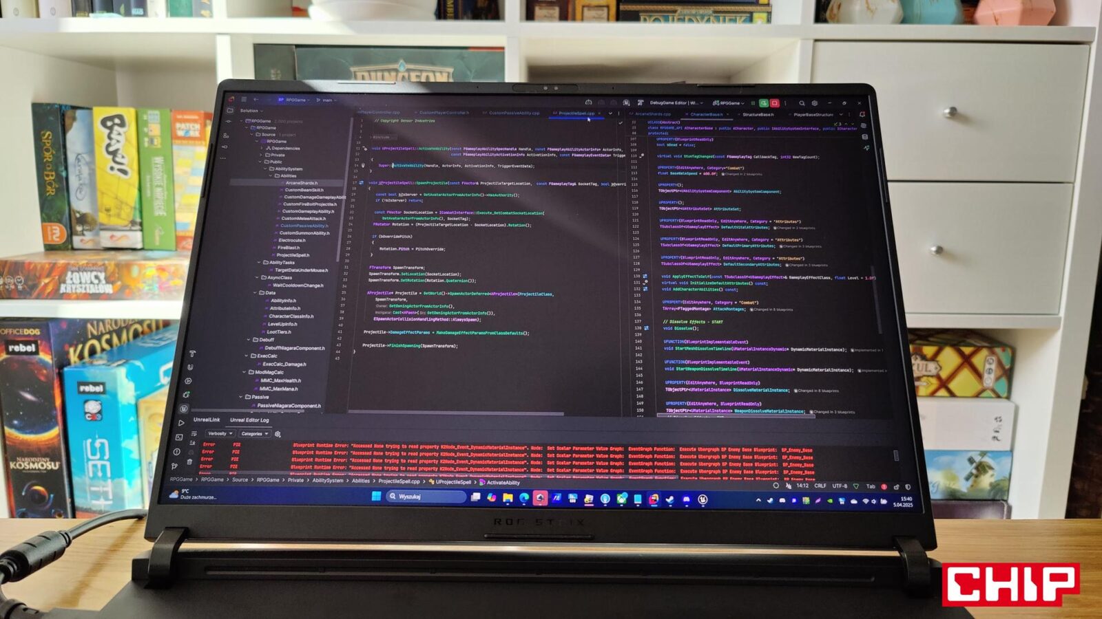 Oczywiście gaming to nie wszystko. Na ROG Strix SCAR 18 (2025) G835 pracuje się też świetnie w silnikach pokroju Unity czy Unreal Engine 5, gdzie 64-gigabajtowa konfiguracja pamięci RAM wystarcza z nawiązką nawet na najbardziej rozbudowany projekt i duet Ridera oraz przeglądarki pełnej otwartych kart. Innymi słowy, to potwór nie tylko do grania, ale też pracy i zważywszy na 24-GB pokład pamięci VRAM oraz nowinki w kwestii rdzeni obliczeniowych, ROG Strix SCAR 18 (2025) G835 umożliwi wam również podbicie najnowszych trendów w narzędziach sztucznej inteligencji.