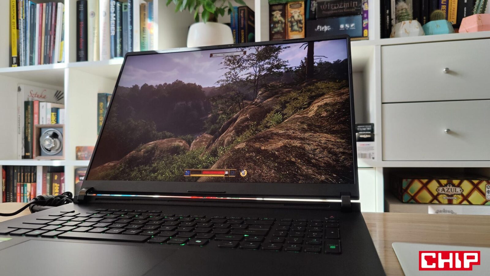 Na pewno Mini LED-ów nie możemy się bać, bo jest to naprawdę ciekawa alternatywa względem OLED-ów, piastujących pozycję na szczycie rankingów zaawansowania ekranów. Mini LED, w przeciwieństwie do OLED-a, nie jest podatny na wypalanie pikseli, co czyni go bezpieczniejszym wyborem przy długotrwałym wyświetlaniu statycznych treści. Dodatkowo, panele Mini LED potrafią osiągać znacznie wyższą jasność szczytową, co przekłada się na lepsze wrażenia HDR oraz większą czytelność w mocno oświetlonych pomieszczeniach. Z kolei OLED wciąż pozostaje liderem, jeśli chodzi o perfekcyjną czerń i nieskończony kontrast – bo każdy piksel emituje światło niezależnie. Wybór między tymi technologiami to w gruncie rzeczy decyzja pomiędzy bezkompromisową jakością obrazu (OLED), a wysoką uniwersalnością i odpornością na zużycie (Mini LED). ROG Strix SCAR 18 stawia na to drugie — i dla wielu użytkowników będzie to wybór trafiony. Zwłaszcza przy korzystaniu z tego laptopa w pomieszczeniach z jasnymi źródłami światła lub po prostu na zewnątrz, bo antyrefleksowe powłoki robią akurat fenomenalną robotę w porównaniu do błyszczących paneli OLED.