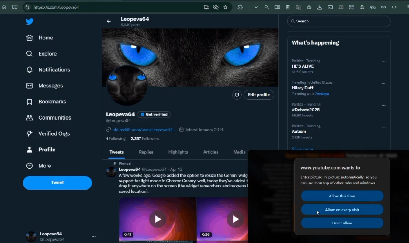 Użytkownik platformy X Leopeva64 zatweetował, że Chrome testuje nowy automatyczny tryb obrazu w obrazie z filmami z YouTube. Oznacza to, że wkrótce będziesz mógł oglądać filmy z YouTube z karty w tle, jednocześnie robiąc coś innego na innej karcie. Miniodtwarzacz YouTube pojawia się w rogu, gdy odtwarzasz wideo, ale poruszasz się po samym YouTube. W klipie Leopeva64 możesz zobaczyć coś bardzo podobnego, co dzieje się, gdy przełącza się z YouTube na inną kartę podczas odtwarzania wideo.