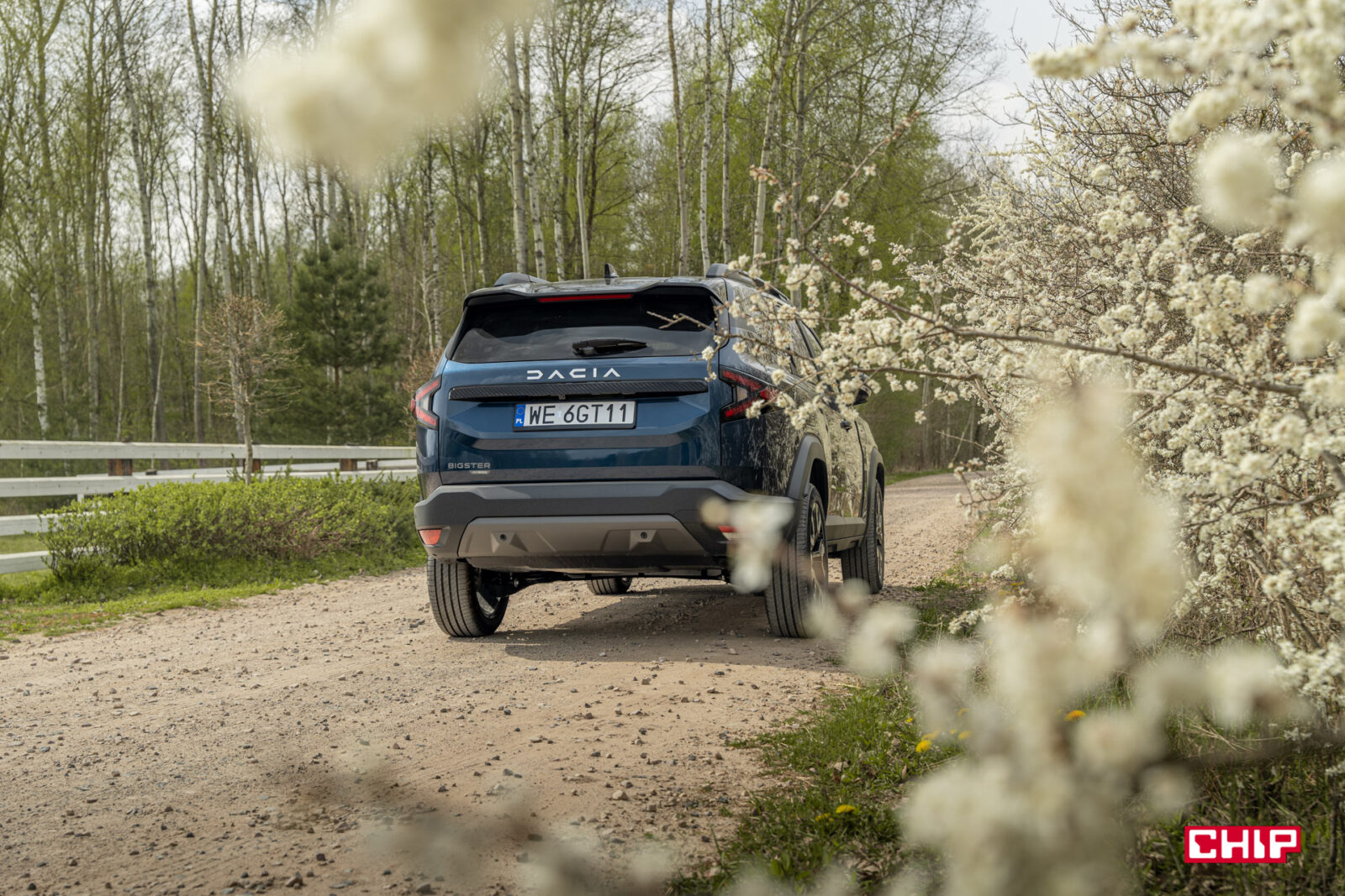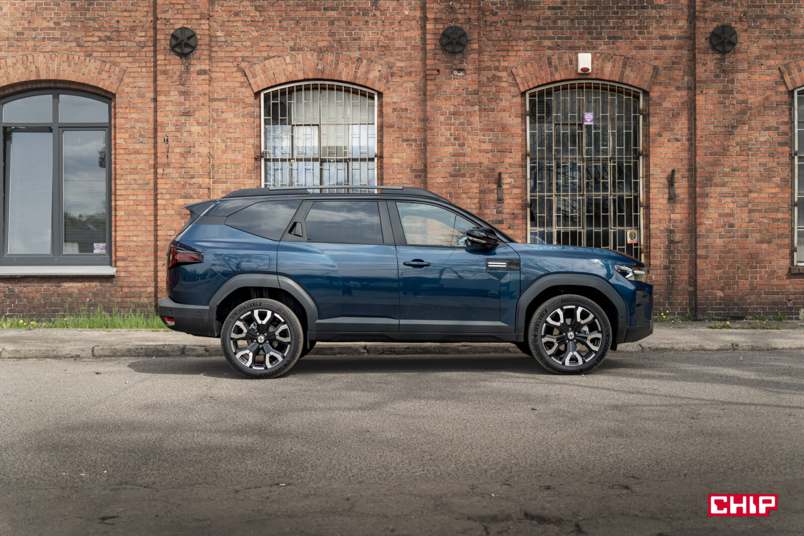 Bigster jest standardowo wyposażony w 17- lub 18-calowe aluminiowe felgi, a w topowej wersji Journey dostępne są 19-calowe obręcze z ciekawymi wzorami, które dodają mu nieco bardziej wyrafinowanego wyglądu. Po raz pierwszy w Dacii można wybrać dwukolorowe nadwozie z czarnym dachem, dostępne w wyższych wersjach wyposażenia. Nowy kolor — metalizowany niebieski Indigo, który sfotografował Arek Dziermański z naszej redakcji — wygląda elegancko, choć w błocie szybko pokazuje, że nie lubi brudu, co może na dłuższą metę nieco przeszkadzać.