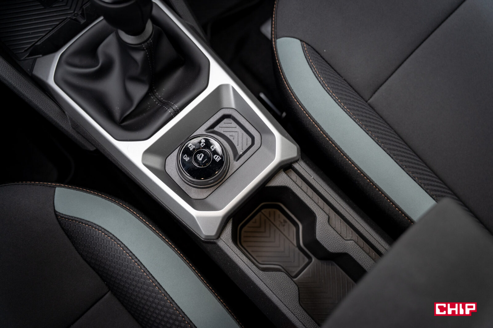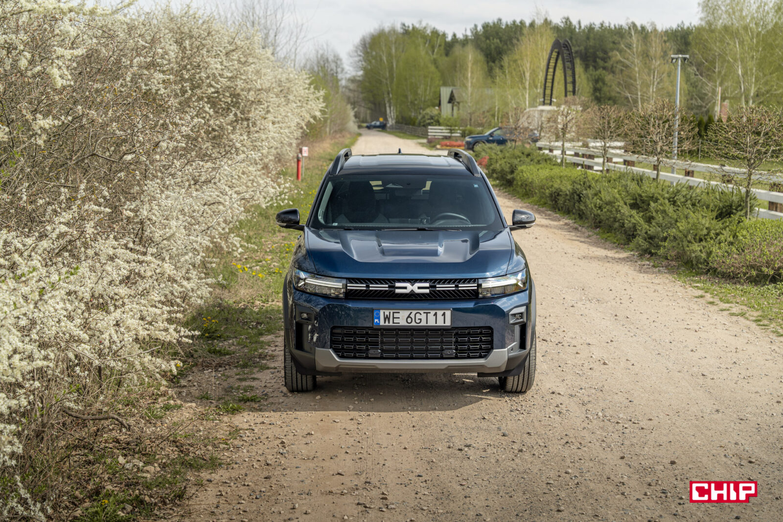 Oczywiście w środku to nadal Dacia. Jest więc nieco plastikowo, system na ekranie multimedialnym przydatny jest tylko dlatego, że obsługuje Apple CarPlay i Android Auto i wyświetla obraz z kamer, bo sam jest do bólu prosty i przy okazji niezbyt przydatny; ale z drugiej strony działa naprawdę solidnie. No bo jak nie ma na nim zbytnio co działać, to doskonale sobie radzi. Nie ma tutaj technologicznej rewolucji, ale nikt z nas tego nie oczekiwał — w tej cenie naprawdę nie wypada marudzić. Przestrzeni jest ogrom i fotele są faktycznie wygodne, chociaż elektrycznej regulacji fotela doczeka się tylko kierowca… i to nie zawsze. Byłem w bardzo negatywnym szoku, kiedy przesiadając się z Bigstera Journey Hybrid 155 do Extreme Mild Hybrid 130 4×4 zobaczyłem nie tylko manualną skrzynię biegów, ale też podnoszenia siedzenia plastikową wajchą. Szczególnie, że cena za pierwszy z wymienionych modeli była wyłącznie o niecałe 10 tysięcy złotych wyższa. Całe szczęście, korbotronika tu już nie uświadczymy w żadnej wersji.