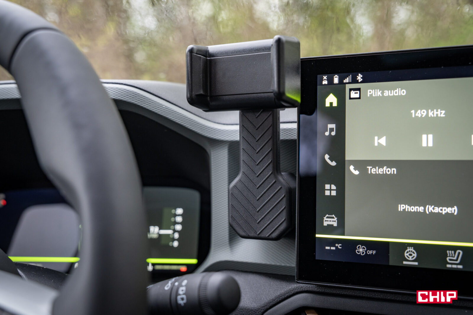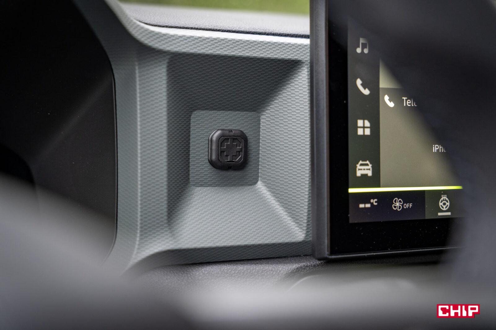Nie można nie wspomnieć o systemie YouClip. Standardowo oferuje pięć punktów mocowania (na desce rozdzielczej, konsoli i w bagażniku), z opcją rozbudowy o dwa kolejne. Umożliwia przechowywanie akcesoriów, takich jak uchwyty na tablet, smartfon, kieszenie na drobiazgi czy akcesorium „3 w 1” (uchwyt na kubek, zaczep na torbę, przenośna lampka). W wersji Extreme „3 w 1” jest w standardzie, co podnosi funkcjonalność wnętrza. Brakuje cup holdera z tyłu? Proszę bardzo, można go wpiąć właśnie tam. Kierowca zamiast uchwytu na telefon z jakiegoś powodu chce mieć dodatkową lampkę? Również nie ma kłopotu. Pomysł genialny w swojej prostocie.