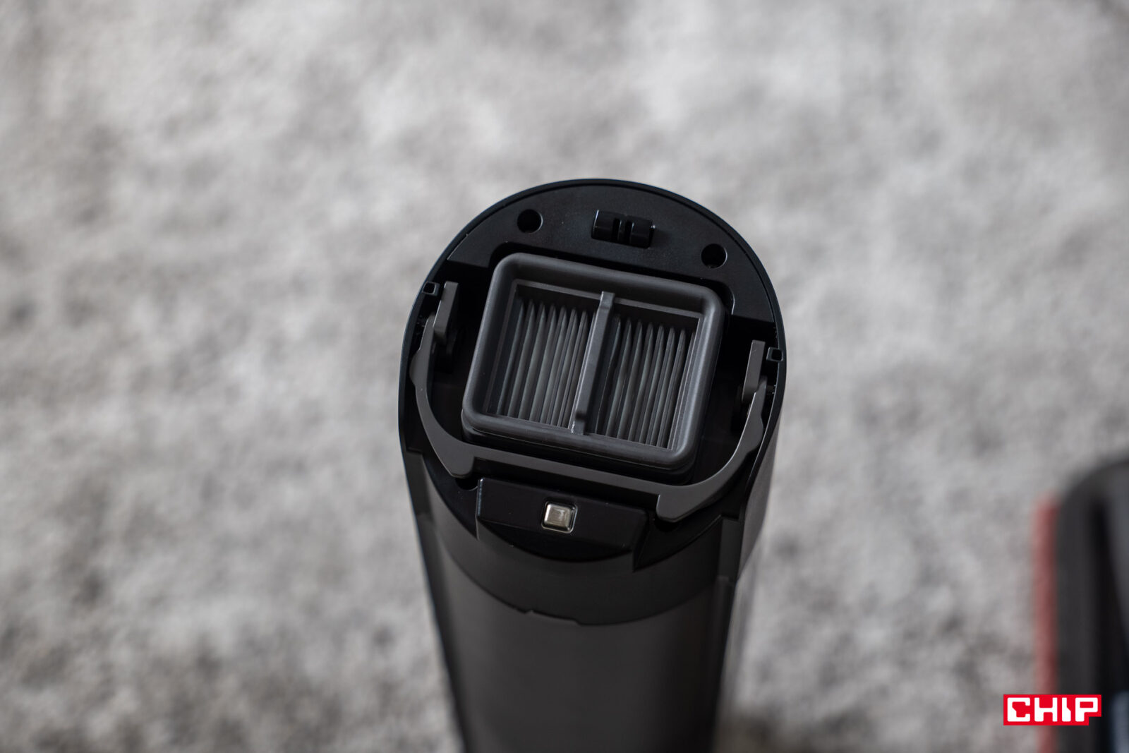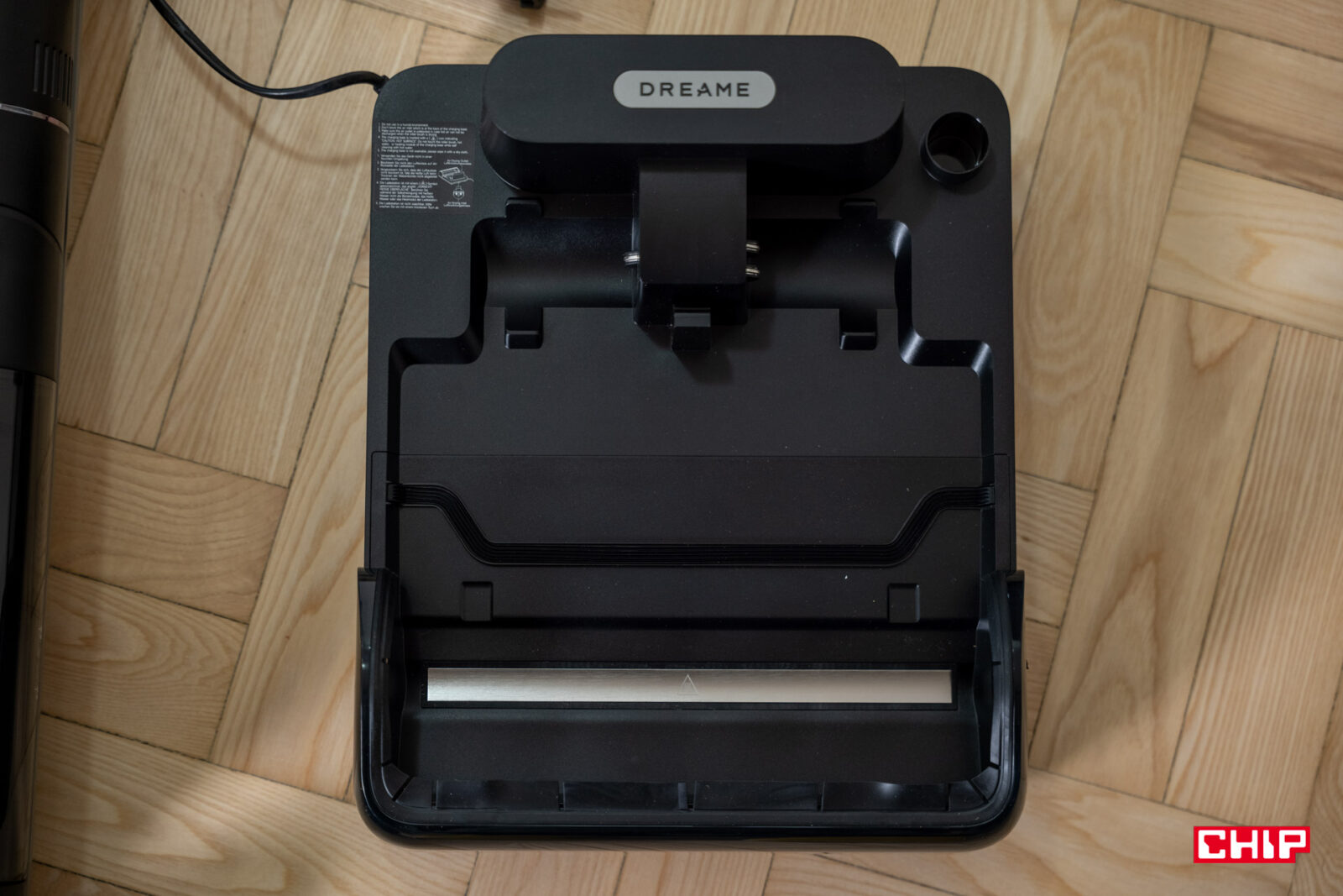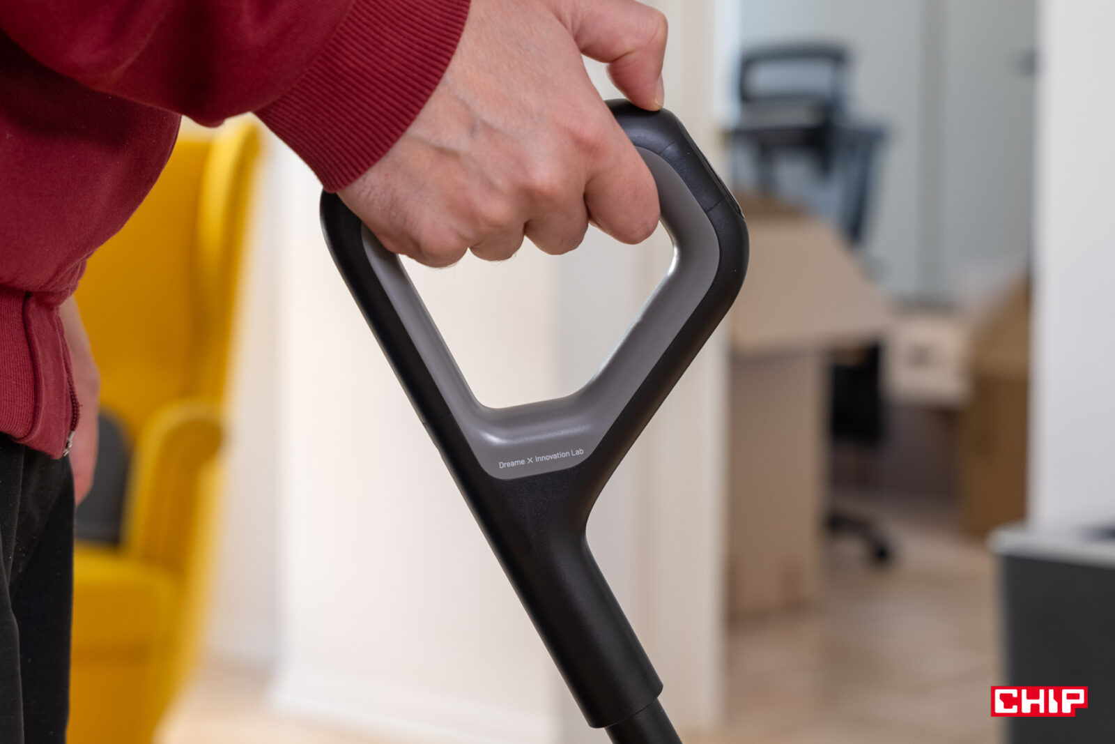 Zawsze mam wątpliwości, czy dołączana rączka to najlepsze rozwiązanie dla konstrukcji ważącej 5,8 kilograma. Na szczęście po prostym montażu nie ma już czego się bać. Połączenie rączki z resztą konstrukcji jest mocne – na tyle, że niezbędny będzie kluczyk/igiełka pokroju tych do kart SIM, by wyjąć rączkę z konstrukcji. Sam sprzęt wygląda spójnie i nowocześnie, bez niepotrzebnych odstających elementów. Rączka, za którą chwytamy, to klasyka gatunku. Przyciski dotyczące sprzątania są pod kciukiem, a opcja czyszczenia urządzenia bliżej górnej krawędzi, łatwo dostępna po odłożeniu urządzenia do stacji dokującej.