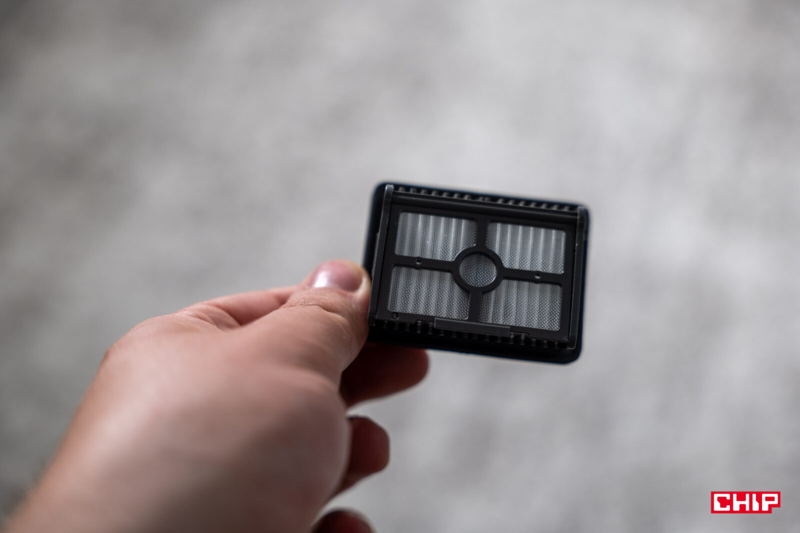 Jeśli chodzi o czystość i wygląd urządzenia, mam dwa małe zastrzeżenia. Dreame H15 Pro lepiej nie dotykać w miejscach poza rączką, bo tworzywo, z którego jest wykonany, widocznie się palcuje. Drugi problem wiąże się z tym, jak dobrze urządzenie suszy rolkę sprzątającą. Ze względu na umieszczenie pojemnika na czystą wodę w części sprzątającej, ten przez większość czasu wygląda na zaparowany. Do tego nie udało mi się jeszcze wlać wody i płynu do czyszczenia tak, by chociaż kilka kropel nie wydostało się poza konstrukcję. Zrzuciłbym to jednak na moją niekompetencję.