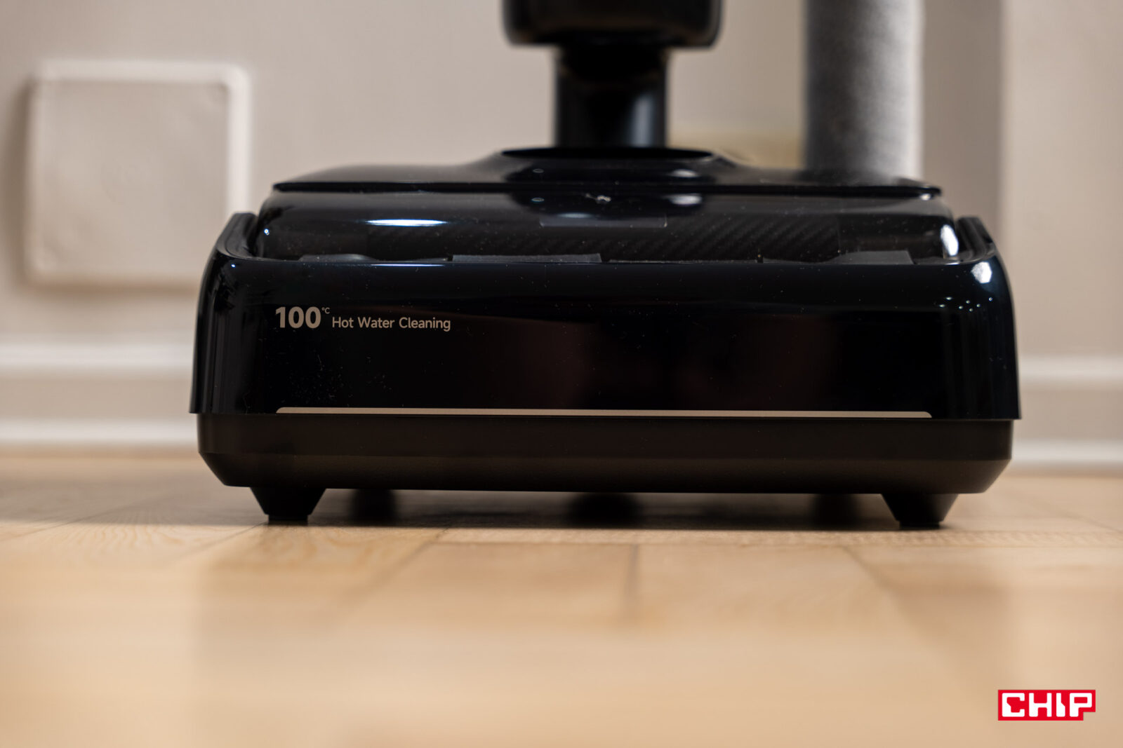 Jako, że mamy do czynienia z konstrukcją odkurzająco-mopującą, producent postawił na spójność stylistyki. Jedyne znaczące akcenty kolorystyczne dotyczą szczotki i systemu GapFree AI DescendReach (spokojnie, wyjaśnię wam tę nazwę wkrótce), a tak dominuje stonowana czerń, zarówno w stacji dokującej, jak i samym urządzeniu. Swoją drogą stacja dokująca prezentuje się bardzo solidnie. Zresztą poniekąd wymusza to system ThermoTub (spokojnie, też za chwilę o tym powiem), korzystający z wody o temperaturze 100 stopni.