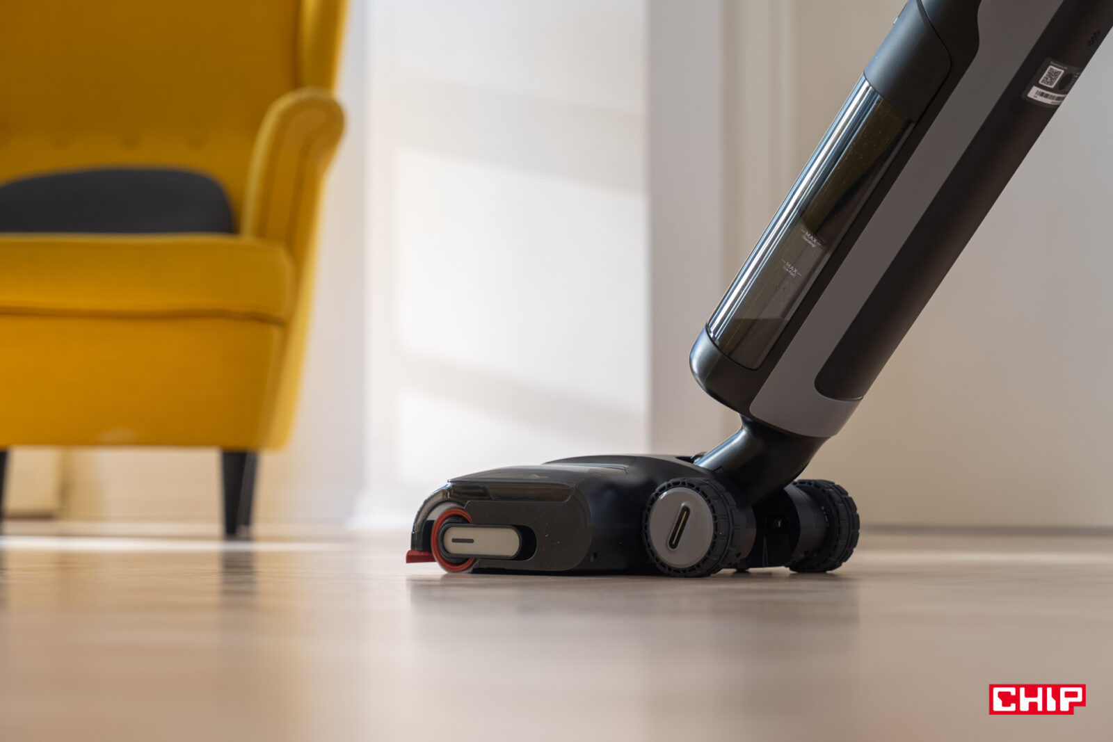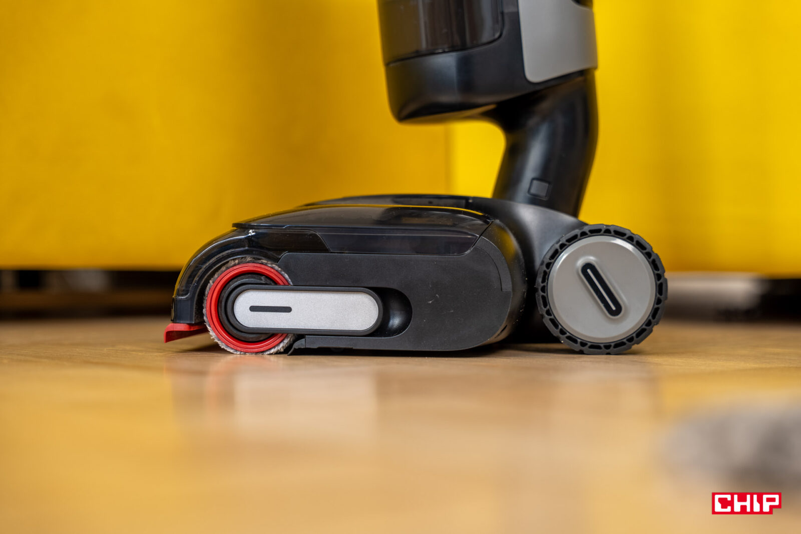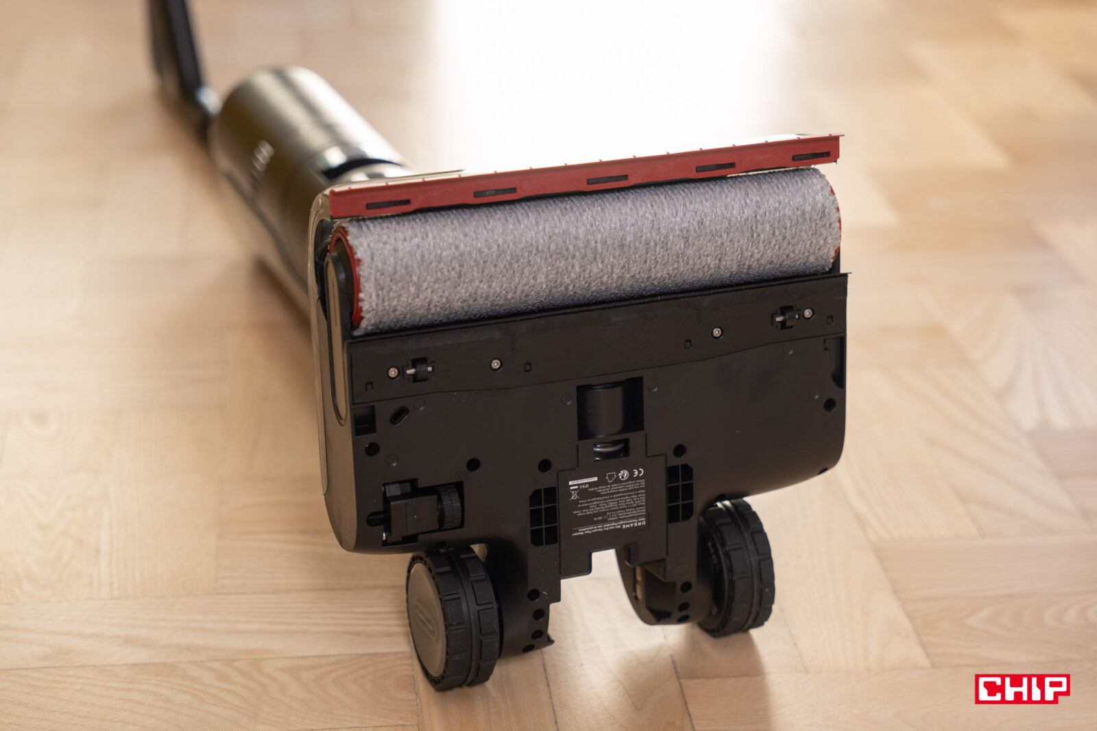 Dreame H15 Pro nie daje odczuć, ze waży prawie 6 kilogramów. Urządzenie porusza się po podłodze z lekkością bliską ręcznym mopom i może, podobnie jak one, zaoferować nachylenie do 180 stopni, więc wjedzie pod wyższe meble. Różnica względem zwykłych mopów jest taka, że w Dreame H15 Pro pracują rozmaite systemy, jak chociażby ostrza TangleCut znajdujące się tuż za rolką sprzątającą. Ich zadaniem jest przeciananie przechodzących włosów oraz sierści po to, by te nie zaplątały się wokół wałka i go nie uszkodziły. W efekcie nie będziemy też musieli często korzystać z ręcznego czyszczenia.