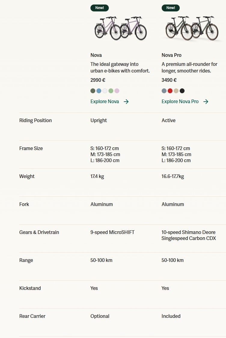 Aktualnie modele Nova i Nova Pro są dostępne w przedsprzedaży w Europie, Wielkiej Brytanii i Szwajcarii, a pierwsze dostawy mają mieć miejsce w czerwcu 2025 roku. Cena? 2990 euro za model Nova i 3490 euro za bardziej zaawansowany Nova Pro, co plasuje je w segmencie premium. Oba rowery występują w trzech rozmiarach ramy (S, M, L) o dwóch typach (step-over i step-through) oraz pięciu kolorach, a do tego objęte są dwuletnią gwarancją oraz 14-dniową polityką zwrotu, a sam ich debiut może zwiastować szerszą zmianę w całej branży.