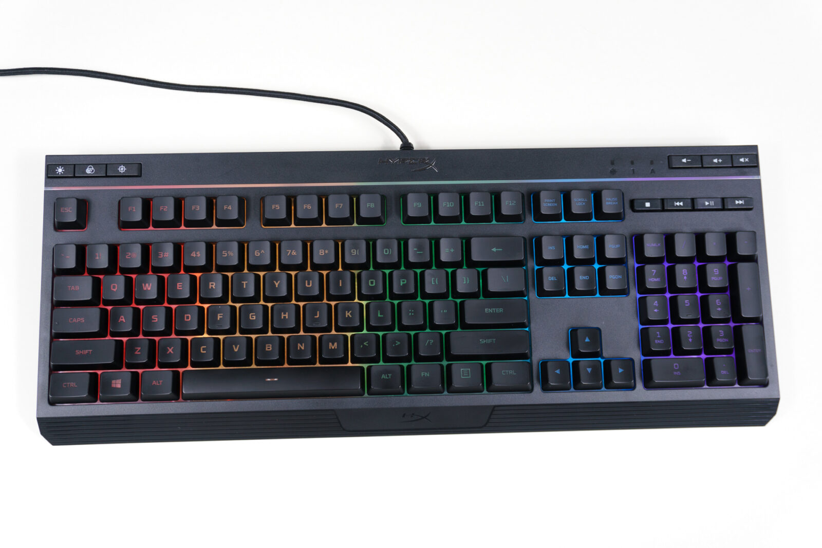 To dość prosta przewodowa klawiatura dla graczy, wyróżniająca się ciekawym wzornictwem, solidną konstrukcją, membranowymi klawiszami i podświetleniem RGB. HyperX Alloy Core RGB wyróżnia się umiarkowaną odpornością na zachlapanie (do 120 ml płynu), funkcją anti-ghosting i n-key rollover. Jeśli chodzi o podświetlenie, to wprost z klawiatury można wybrać trzy poziomy jasności i sześć efektów świetlnych – nie ma tu możliwości programowania własnych kombinacji.