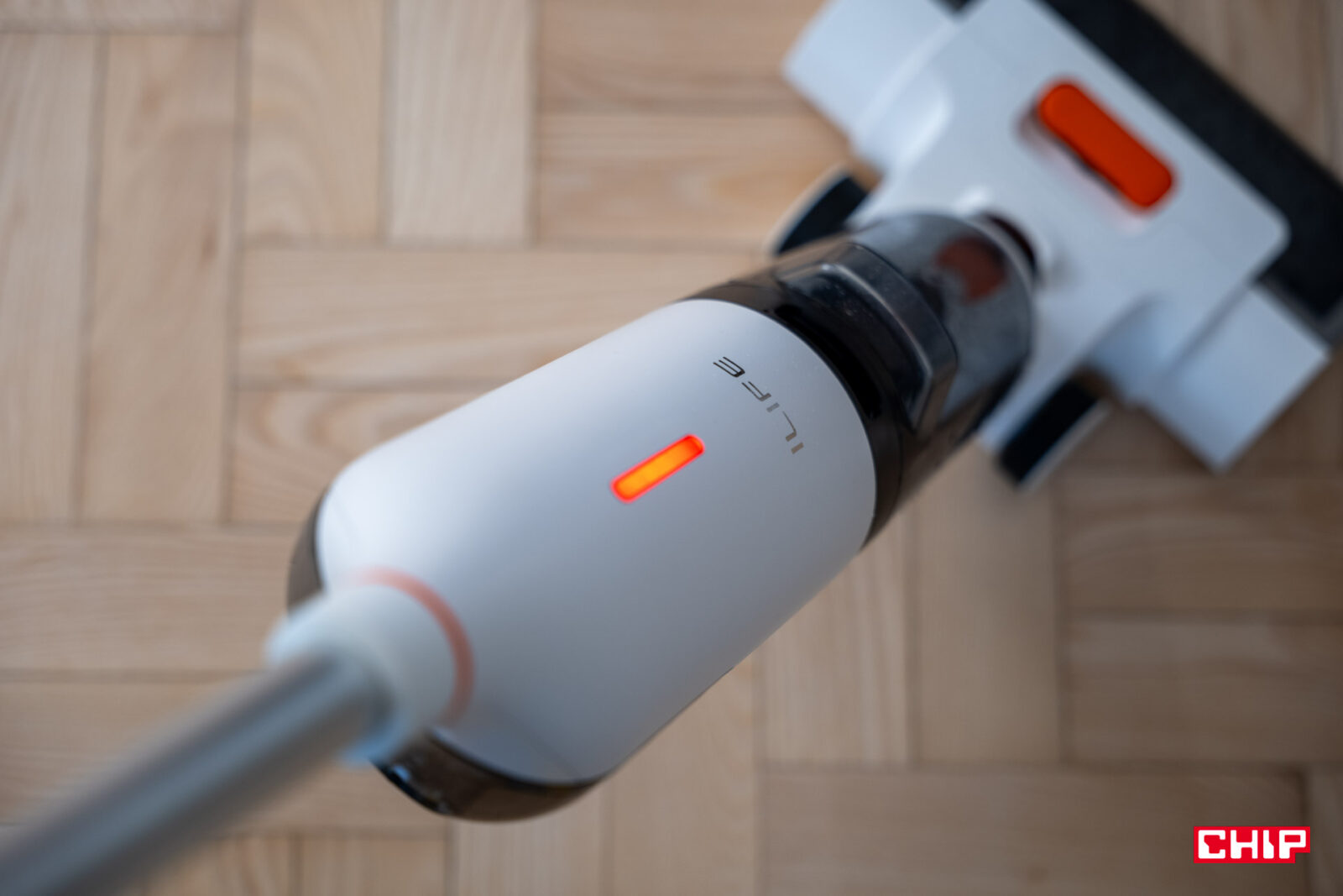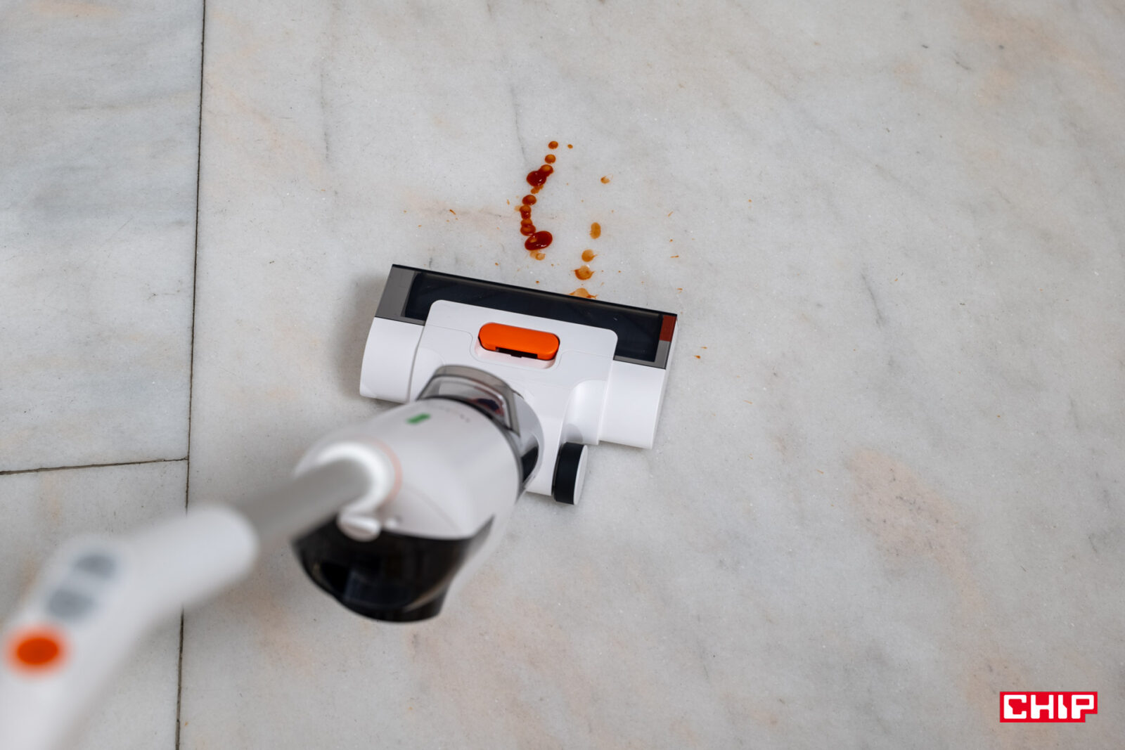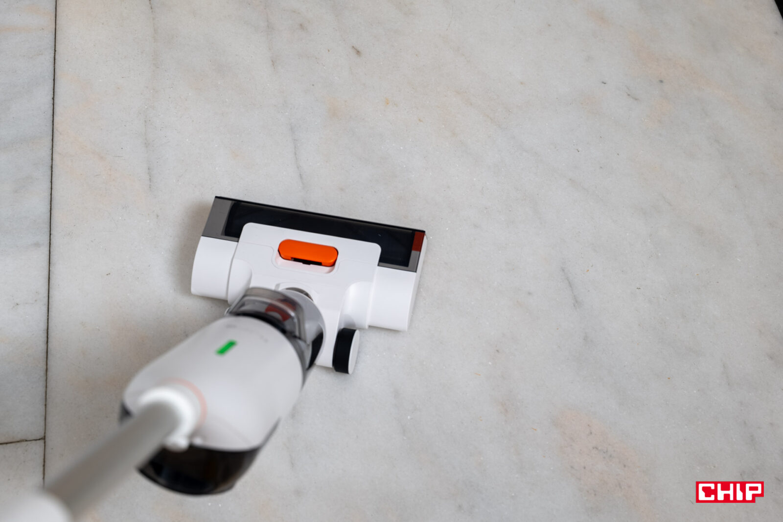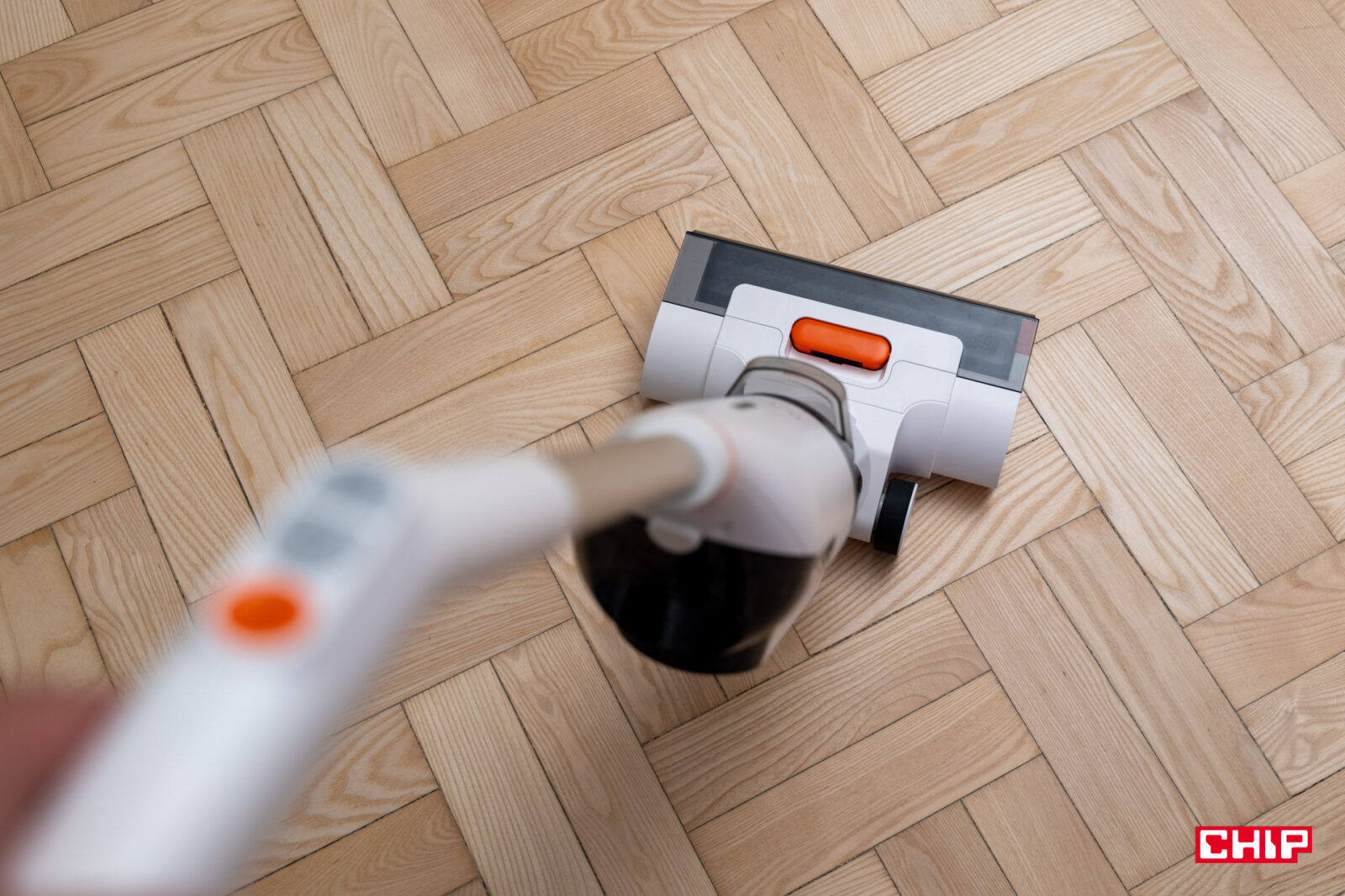 Największe obawy miałem co do rączki łączącej część sprzątającą z przyciskami kontrolnymi. Jej kształt nie jest tak oczywisty, zwłaszcza biorąc pod uwagę tylny przycisk przypominający spust z kontrolera do gier. Na szczęście nie było to żadnym problemem w korzystaniu i choć doceniłbym przycisk pozwalający kliknąć raz, by dopuścić stały dopływ wody, tak jest to kompromis, na który byłem gotowy przystać. Nie trzeba w końcu naciskać tego przycisku zbyt mocno, do tego ulokowano go w dogodnym miejscu.