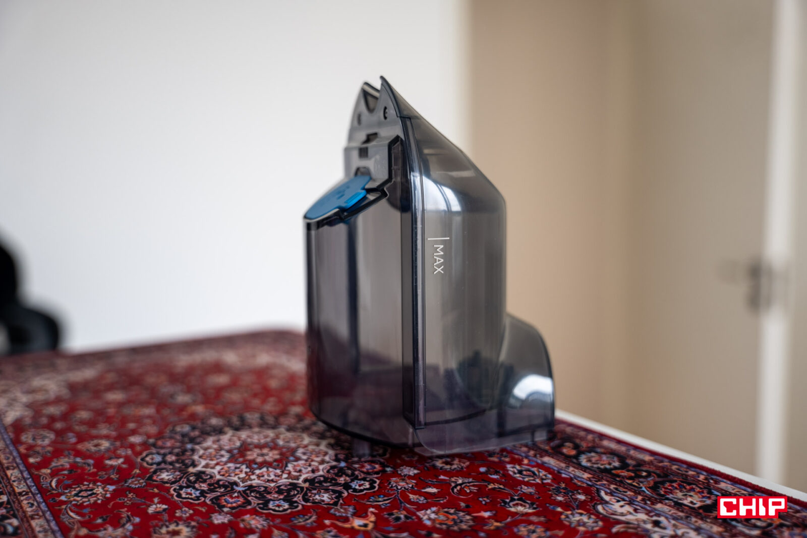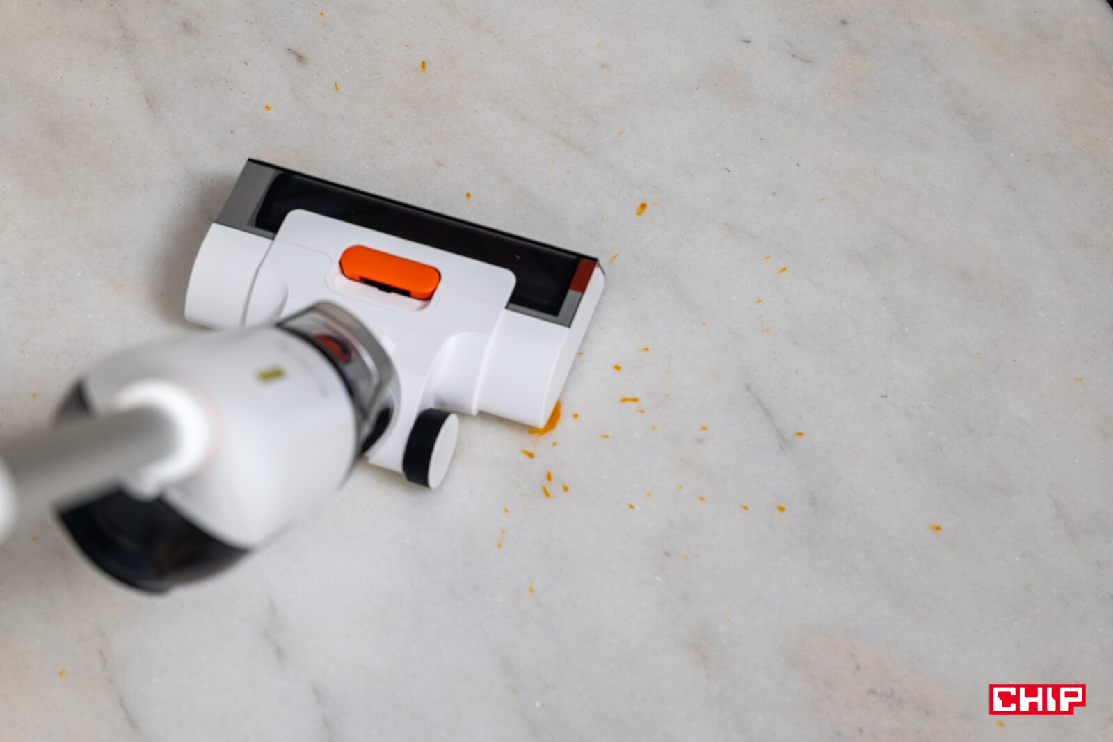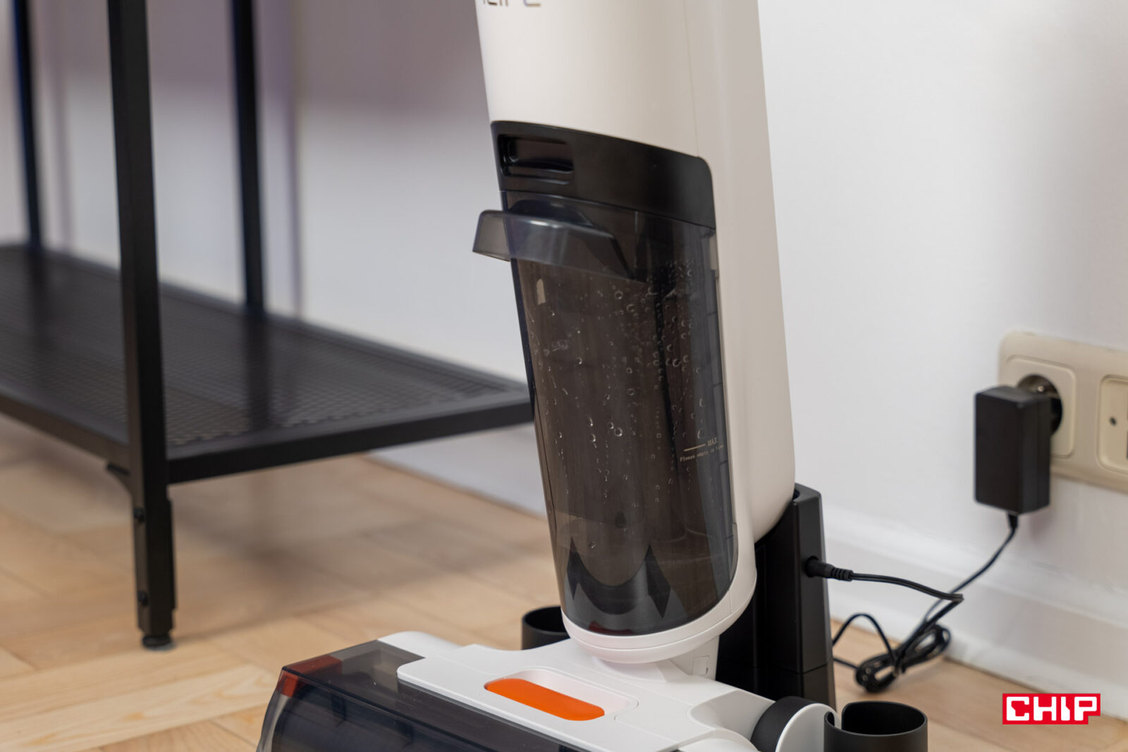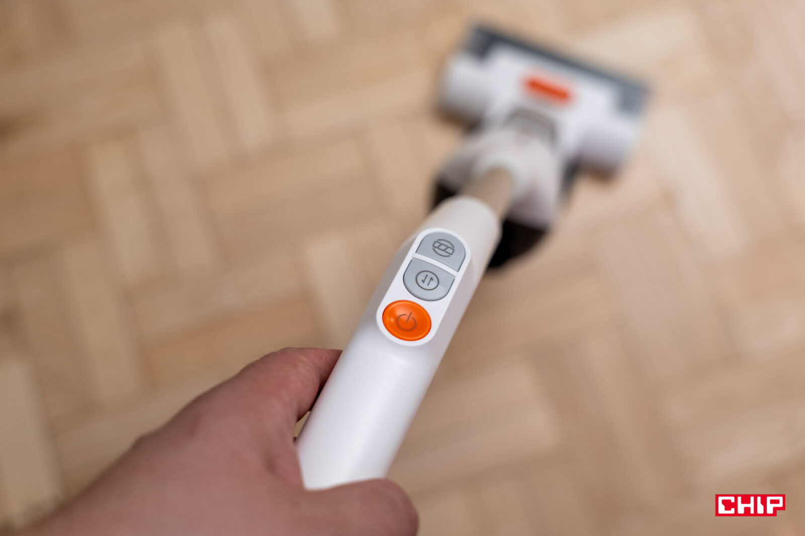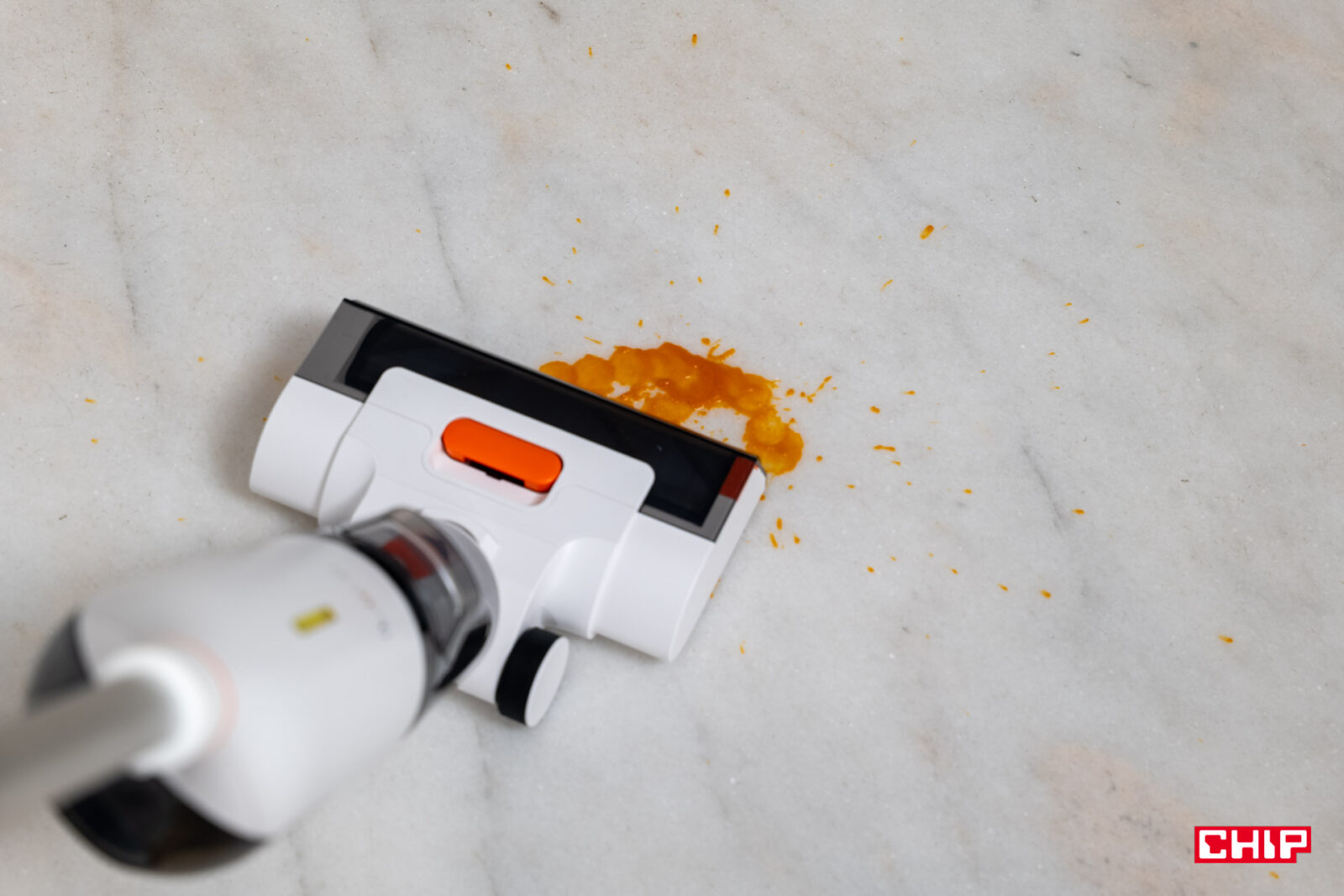 Największe obawy miałem co do rączki łączącej część sprzątającą z przyciskami kontrolnymi. Jej kształt nie jest tak oczywisty, zwłaszcza biorąc pod uwagę tylny przycisk przypominający spust z kontrolera do gier. Na szczęście nie było to żadnym problemem w korzystaniu i choć doceniłbym przycisk pozwalający kliknąć raz, by dopuścić stały dopływ wody, tak jest to kompromis, na który byłem gotowy przystać. Nie trzeba w końcu naciskać tego przycisku zbyt mocno, do tego ulokowano go w dogodnym miejscu.