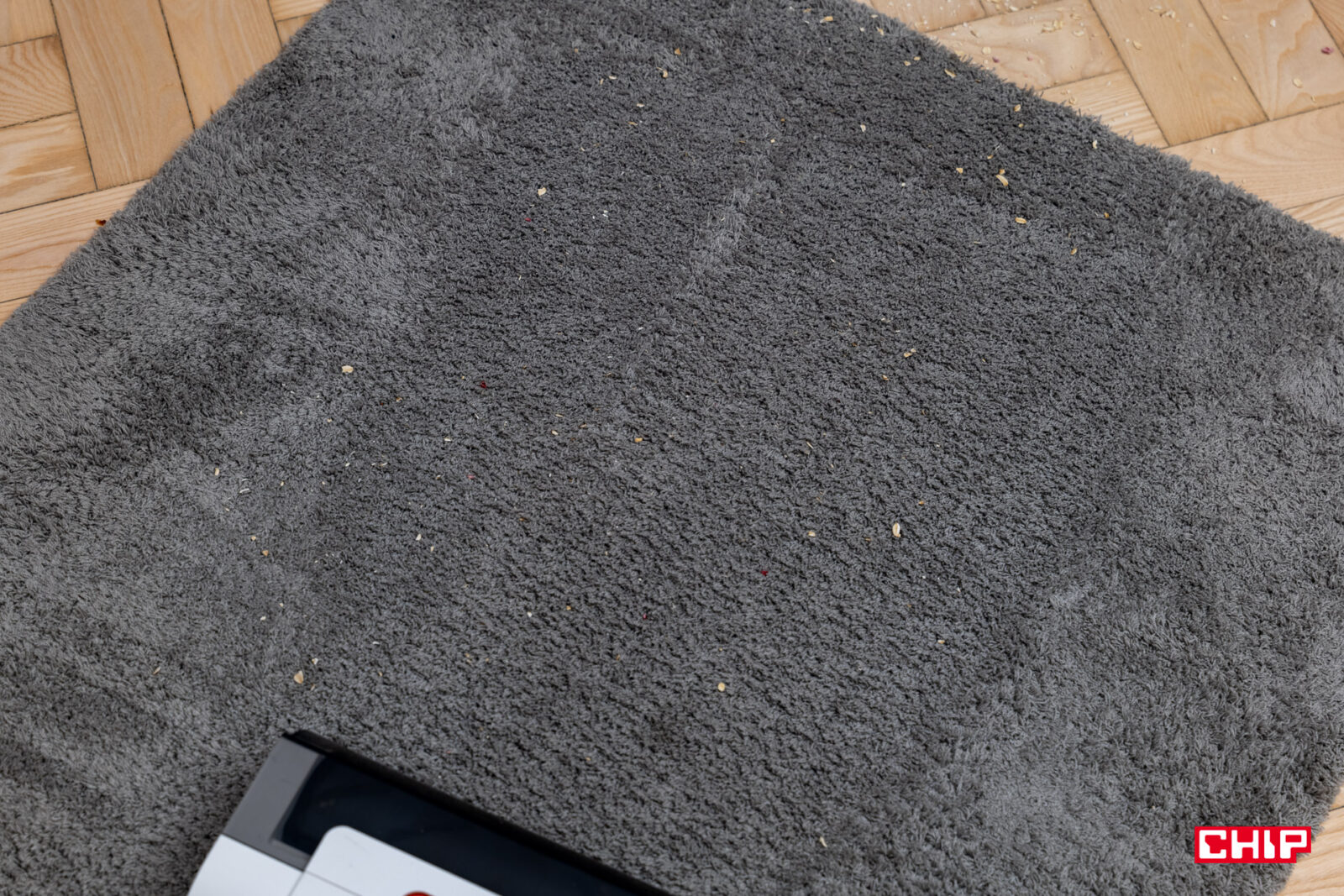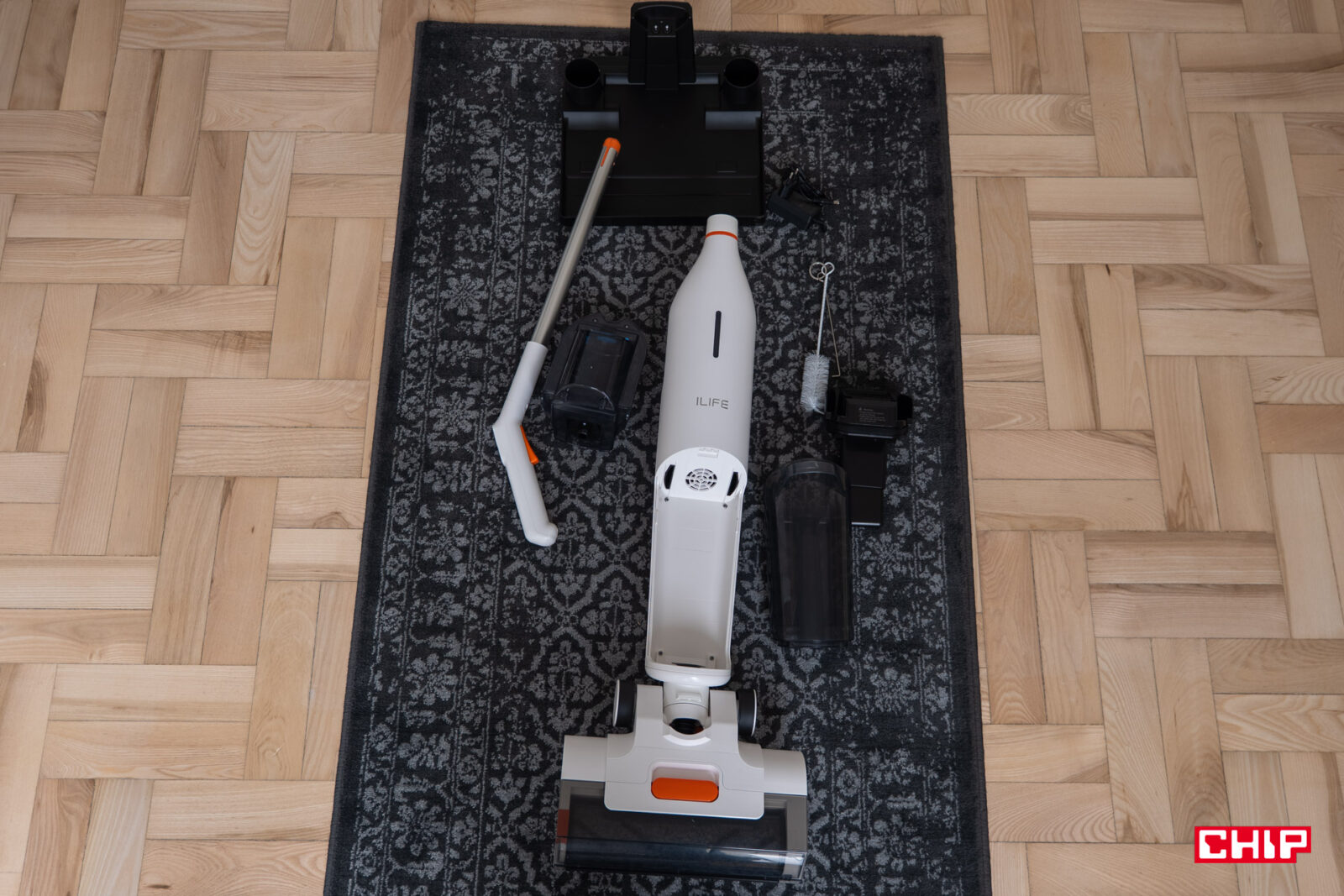 Na początku warto jednak zaznaczyć pewną, być może oczywistą, rzecz. Dla iLife W90 dywany nie będą naturalnym środowiskiem. Jasne, może on czyścić także i na nich, wszak wystarczy nie namaczać szczotki, ale konstrukcja nie powstała po to, żeby zasysać elementy z wykładziny. Stąd pewnie nie znajdziecie jej na przekazach materiałowych, stąd też dość średni rezultat mojego testowego odkurzania.