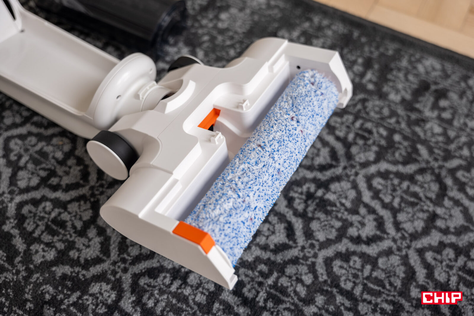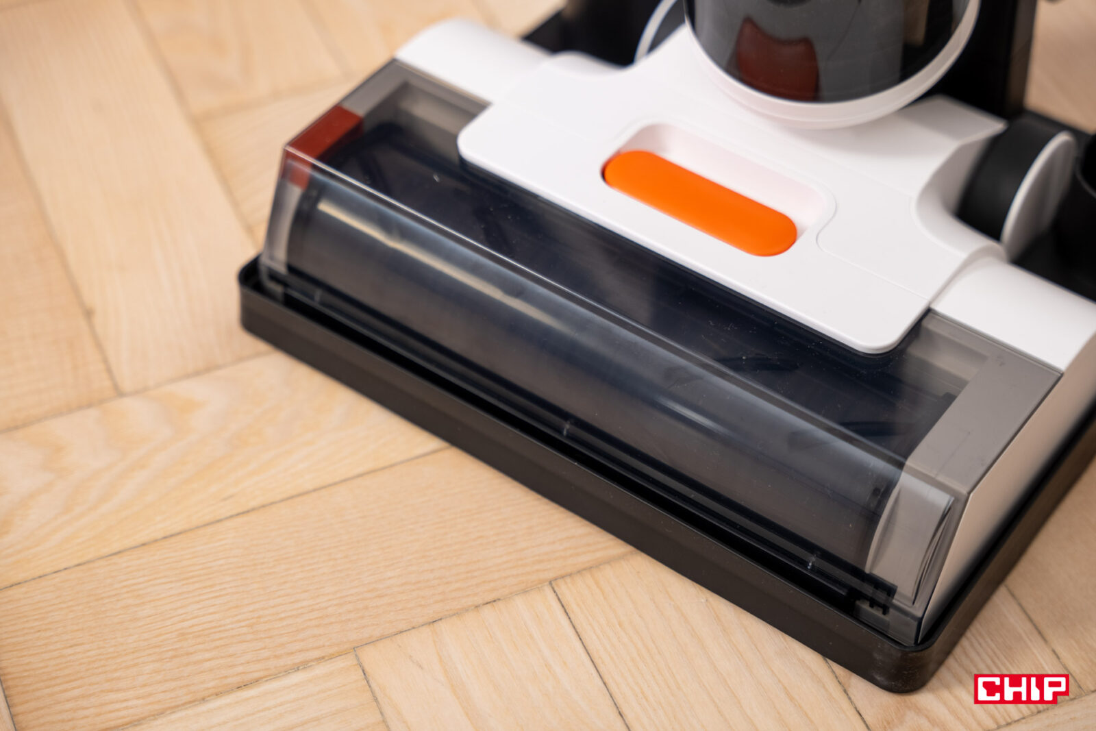 To może być w znacznym stopniu zasługą szczotki, która w znacznej mierze jest miękka, ale posiada też w swojej konstrukcji twarda szczoteczki o kilku włosiach. Nie wygląda na to, by te miały potencjał do rysowania podłogi, za to z pewnością pomogą zebrać włosy i większe elementy. Jej montaż nie powinien nikomu przyprawić problemu, podobnie jak założenie pokrywy osłaniającej szczotkę. Bez niej woda strzelałaby na wszystkie strony.