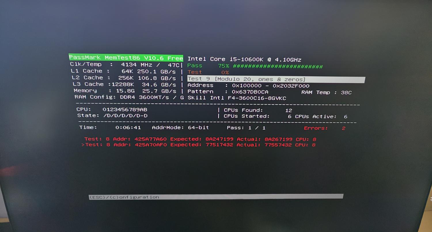 Przy pamięciach RAM warto puścić z bootowalnego pendrive program MemTest86 (powyżej zdjęcie z błędami). Jeśli po trzech przejściach programu nie będzie błędów to oznacza, że pamięci działają prawidłowo. Jeśli jakieś się pojawią i test się nie uda może to oznaczać problem z kościami, procesorem lub płytą główną. Mało osób też wie, że Windows ma wbudowane swoje narzędzie. Wystarczy wykorzystać skrót Windows + R i wpisać mdsched. Potem klikamy uruchom ponownie teraz i sprawdź występowanie problemów. Wybieramy potem test standardowy, pamięć podręczną domyślą liczbę przejść 3 i program sprawdzi nam działanie pamięci.