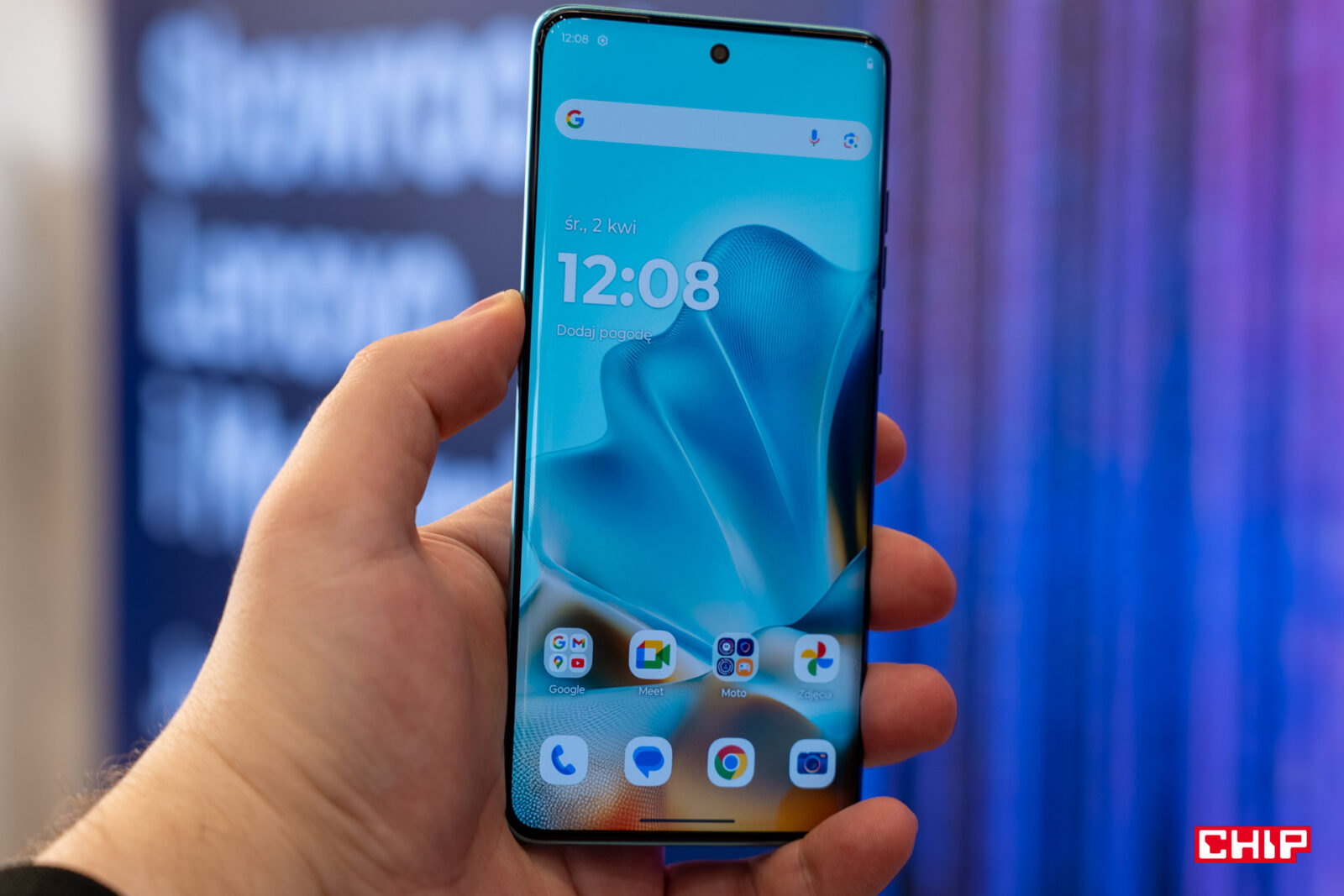 Aspiracje Motoroli wyrażają się nie tylko kształtem obudowy, ale i smukłością ramek okalających ekran o przekątnej 6,67 cala. To jednak nie jedyny parametr, który wypada lepiej niż w ubiegłym roku. Producentowi udało się podbić rozdzielczość do 2712×1220 pikseli (446 pikseli na cal), poprawiając ubiegłoroczne Full HD+. Co jednak jeszcze ważniejsze z perspektywy oszczędzania energii, smartfon zaoferuje panel LTPO P-OLED z regulacją odświeżania od 1 do 120 Hz. Maksymalna jasność wyniesie 1500 nitów, co w tej cenie także prezentuje się dobrze.