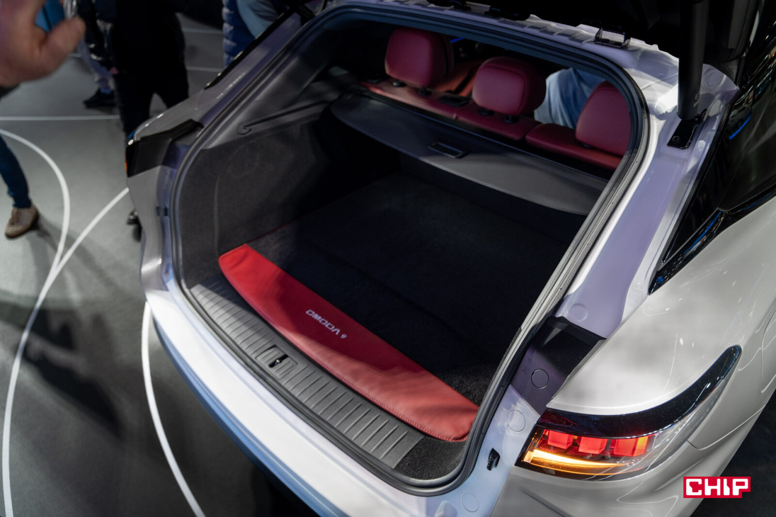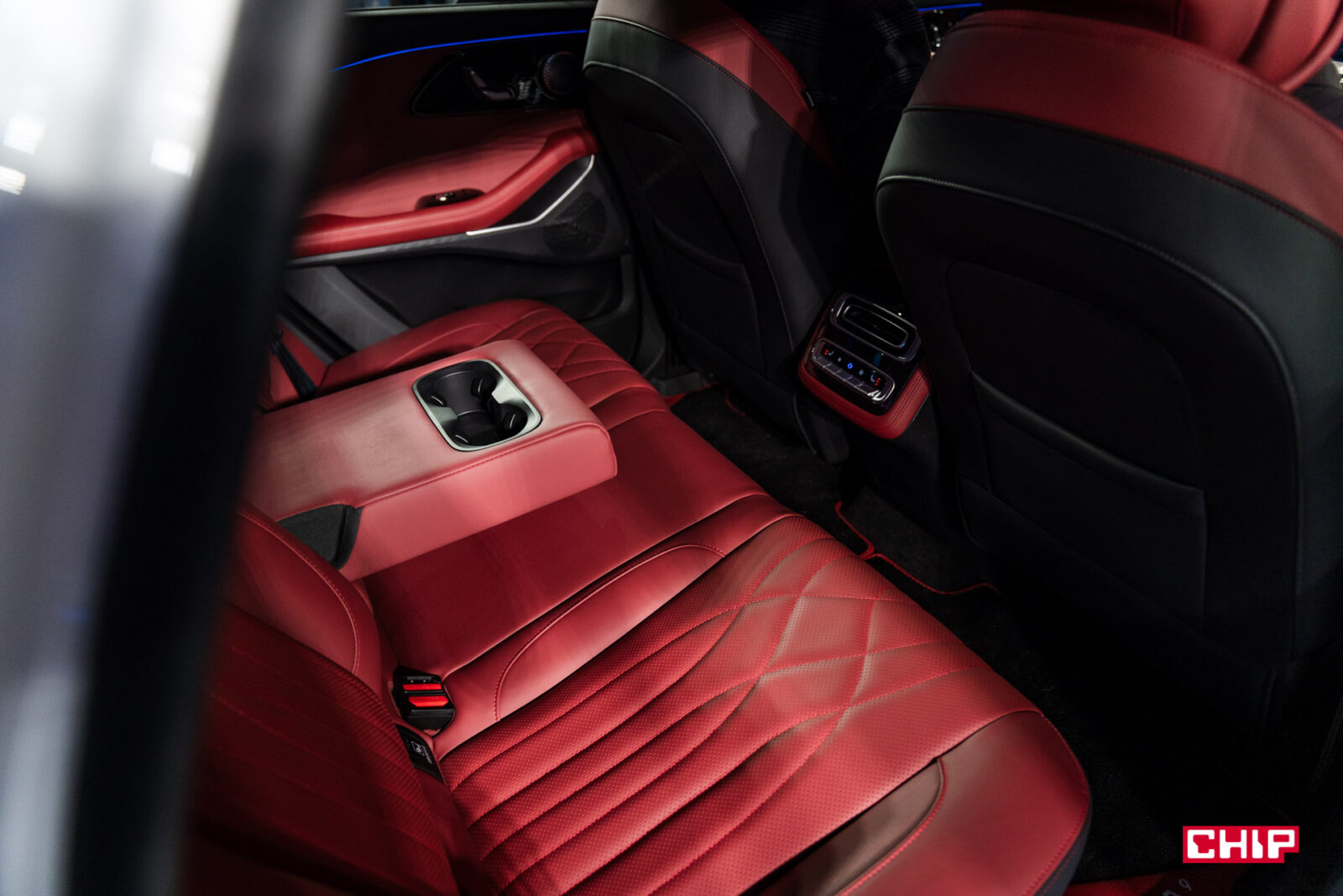 Czerwona tapicerka, którą widzicie na zdjęciach to jeden z dwóch dostępnych wariantów. Drugi jest czarny i jest to skóra naturalna. Wewnątrz auta mamy dwa ekrany, każdy o przekątnej 12,3 cala, head-up z rozszerzoną rzeczywistością o przekątnej 50 cali, bezprzewodowego Androida Auto i Apple CarPlay, asystenta głosowego oraz 14 głośników marki Sony.