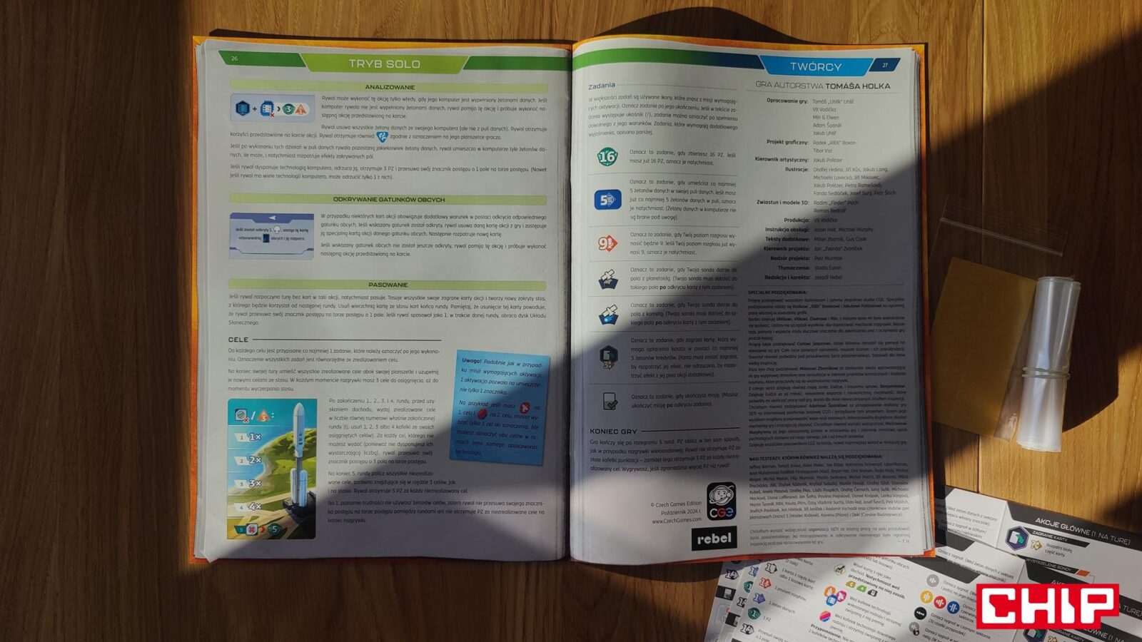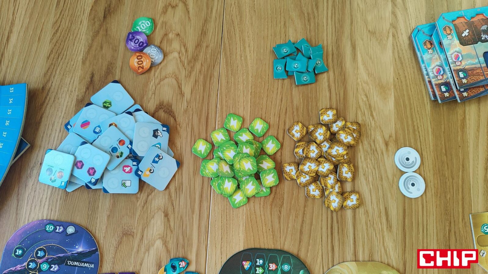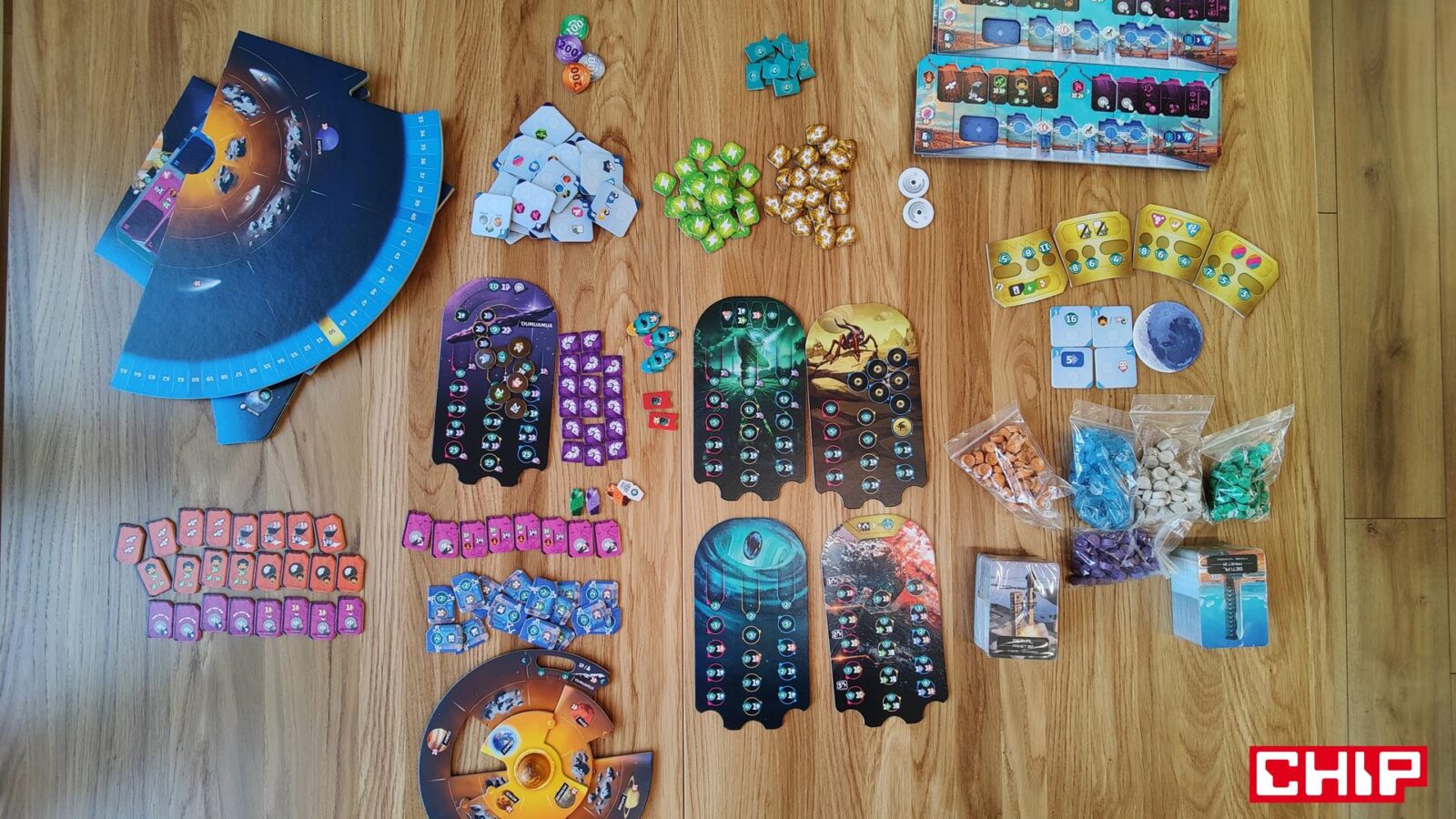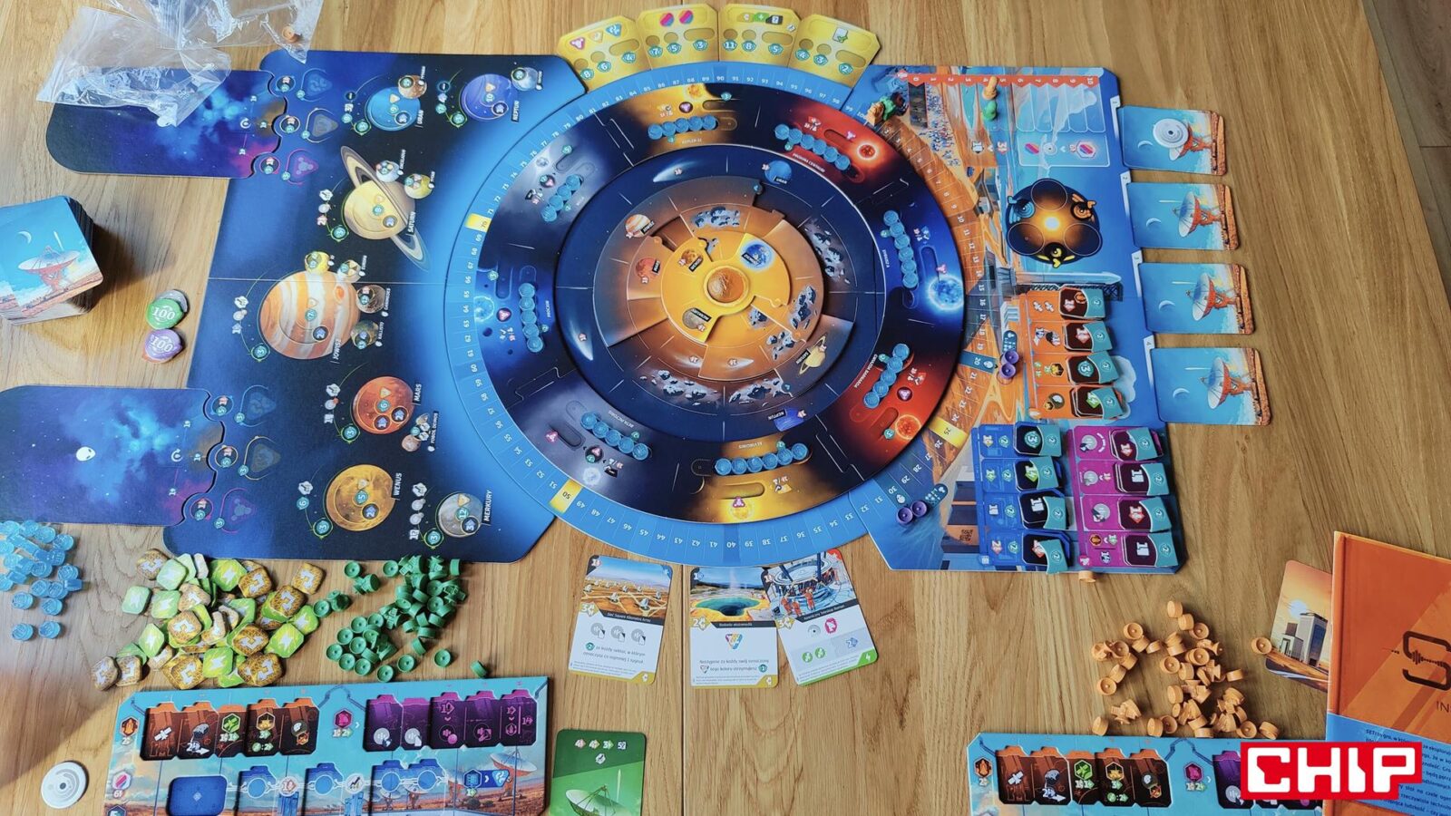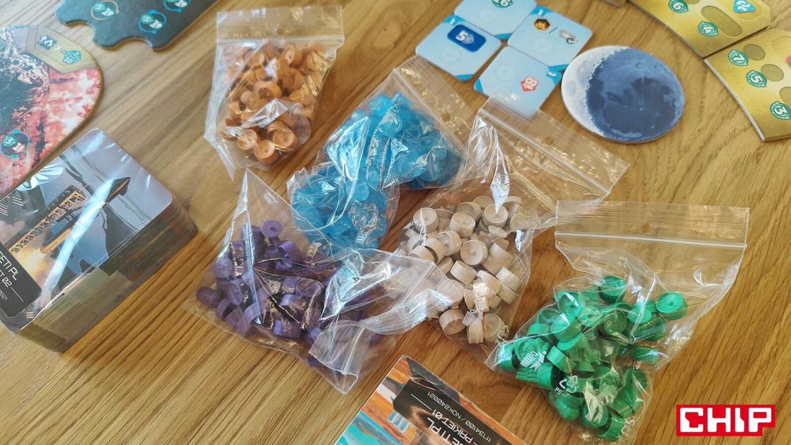 Jest więc tego sporo, ale mimo niskiej ceny gry planszowej, wykonanie poszczególnych elementów nie budzi żadnych wątpliwości. Dobrej jakości karty z ładnymi dla oka grafikami i nawet faktami z rzeczywistego świata napisanymi drobnym druczkiem, grube tekturowe elementy pozbawione odklejającego się laminatu, świetnej jakości plastikowe figurki oraz żetony, a do tego te trzy wielkie plansze główne, które pobudzają drzemiącą w nas ciekawość na temat świata tak bliskiego i tak odległego zarazem – naszego Układu Słonecznego. Czego z kolei brakuje? Ewidentnie wypraski, bo choć producent dorzucił całą masę foliowych woreczków, to te nie zastąpią dedykowanych slotów na poszczególne elementy.