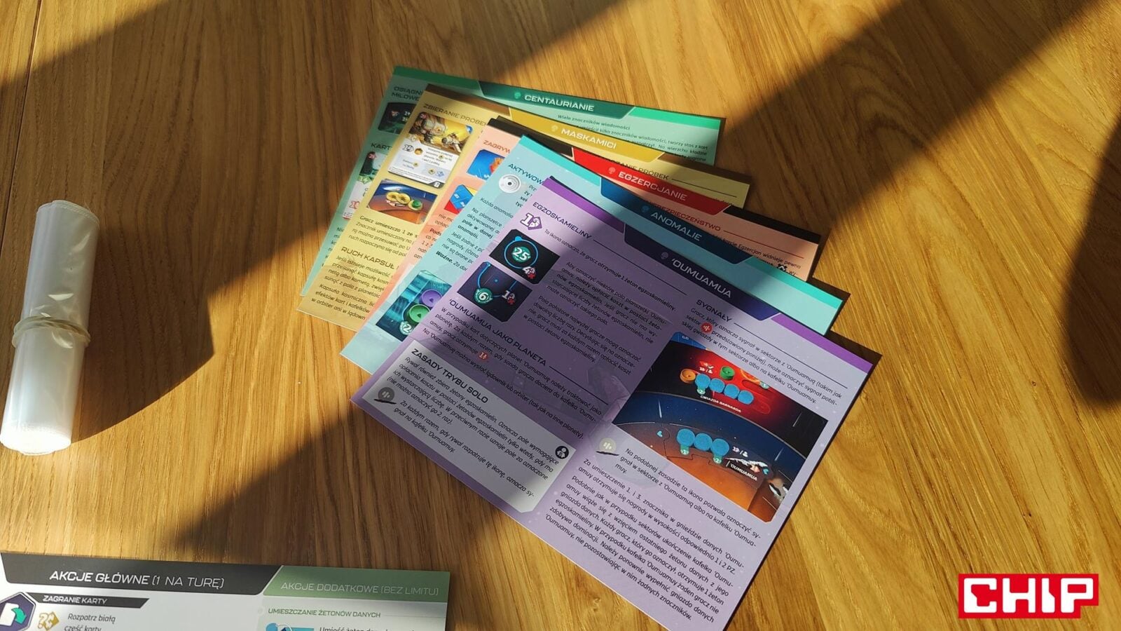 Spokojnie, kilka stron jest dedykowanych trybowi solo, ale za to każdy odkryty obcy rządzi się swoimi prawami i wprowadza kolejną ścianę tekstu do przetrawienia, ale to zostawiamy sobie już na sam tok rozgrywki. Sama instrukcja jest jednak przejrzysta, łatwa w przyswojeniu i pełna bardzo użytecznych grafik oraz wskazówek, a gdyby tego było mało, producent przygotował prawie 25-minutowe nagranie, które bardzo dobrze wprowadza graczy w zasady rządzące się tą przygodą w bycie agencją kosmiczną. Nie jest to jednak pierwsza lepsza gra planszowa, z którą poradzą sobie mniej zaawansowani gracze bez samozaparcia lub kogoś, kto będzie niósł ten kaganek “zasadowego oświecenia” – i nie… wcale nie mam tutaj na myśli neutralizatora obcych pełnych kwasu.