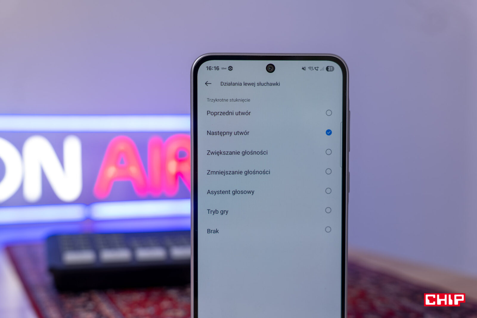W sekcji z innymi opcjami także kryje się sporo ciekawych rozwiązań, ale są też najbardziej podstawowe opcje jak decyzja, czy przerywać muzykę po wyjęciu słuchawki z ucha oraz konfiguracja interakcji dotykowych. Dla każdego ucha przypiszemy osobno podwójne i potrójne dotknięcie oraz przytrzymanie palca. Dodatkowo włączymy funkcję odnajdowania telefonu po czterokrotnym dotknięciu słuchawki.