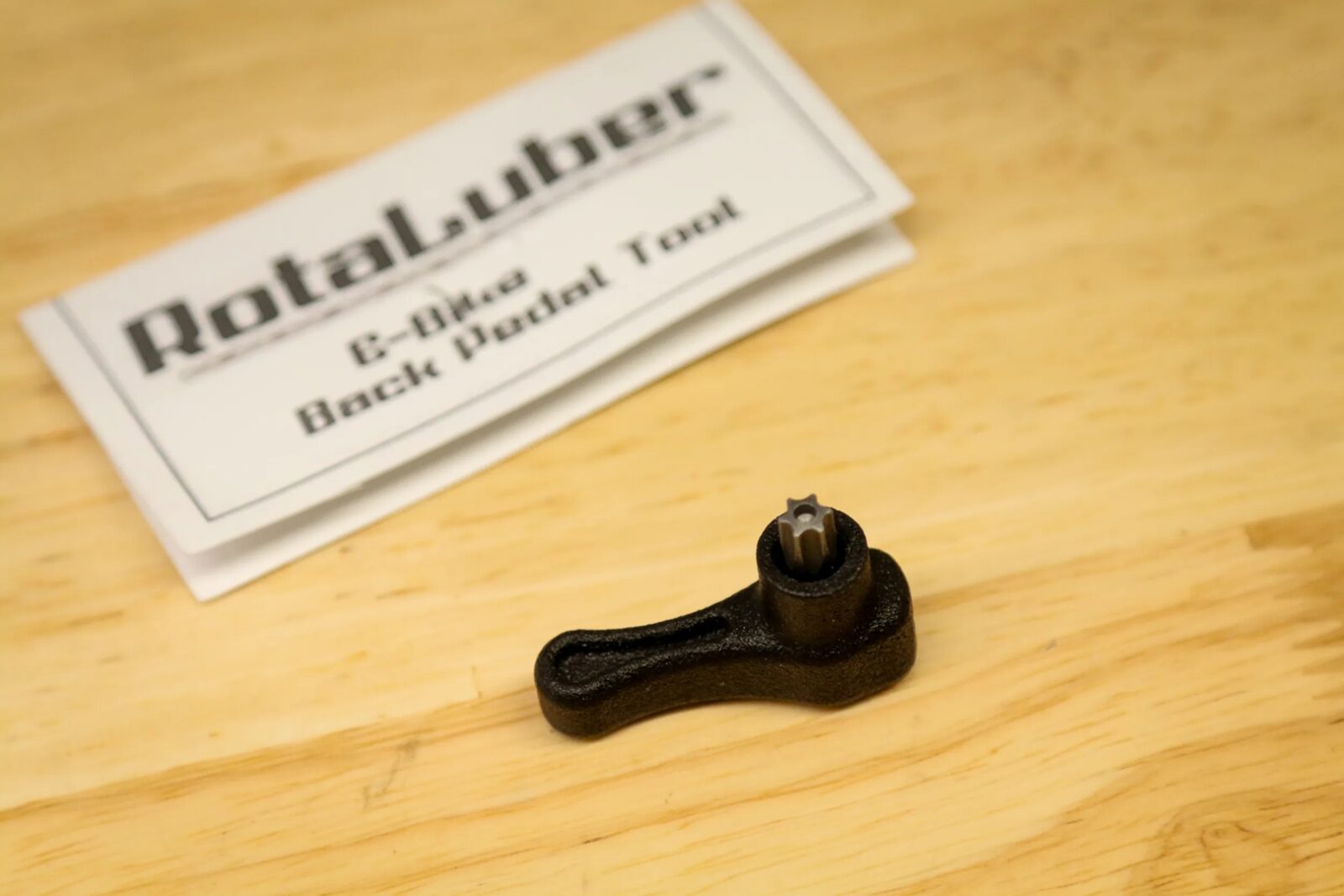 Co ciekawe, z myślą o użytkownikach rowerów elektrycznych, gdzie cofanie korby może być utrudnione, zespół RotaLuber opracował też specjalne narzędzie Backpedal Tool z nylonu drukowanego w 3D. Ten dodatek umożliwia obracanie korby do tyłu nawet w e-bike, co z kolei pozwala na skuteczne smarowanie łańcucha bez potrzeby manipulacji przy samym napędzie.