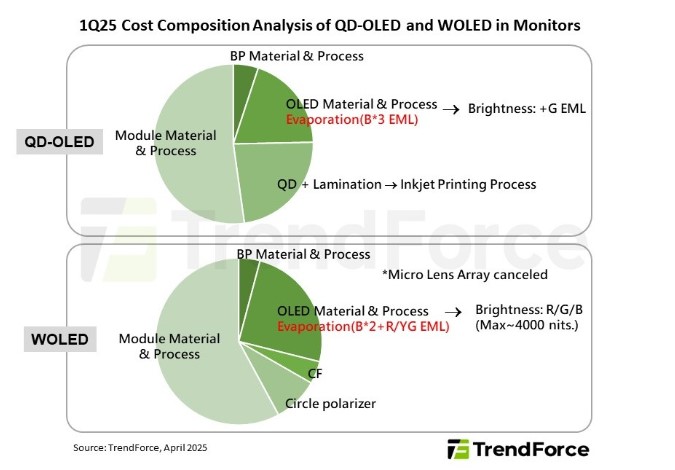 A to dopiero początek, ponieważ raport TrendForce na temat kosztów paneli OLED wskazuje, że materiały emisyjne i folia QD stanowią największą część kosztów produkcji QD-OLED. Jednak proces atramentowy obecnie powoduje 20% marnotrawstwa atramentu na dyszę, dlatego nowo opracowane techniki recyklingu mogą odzyskać do 80% resztkowego atramentu, co może obniżyć koszty i poprawić wydajność materiałów w przyszłości.