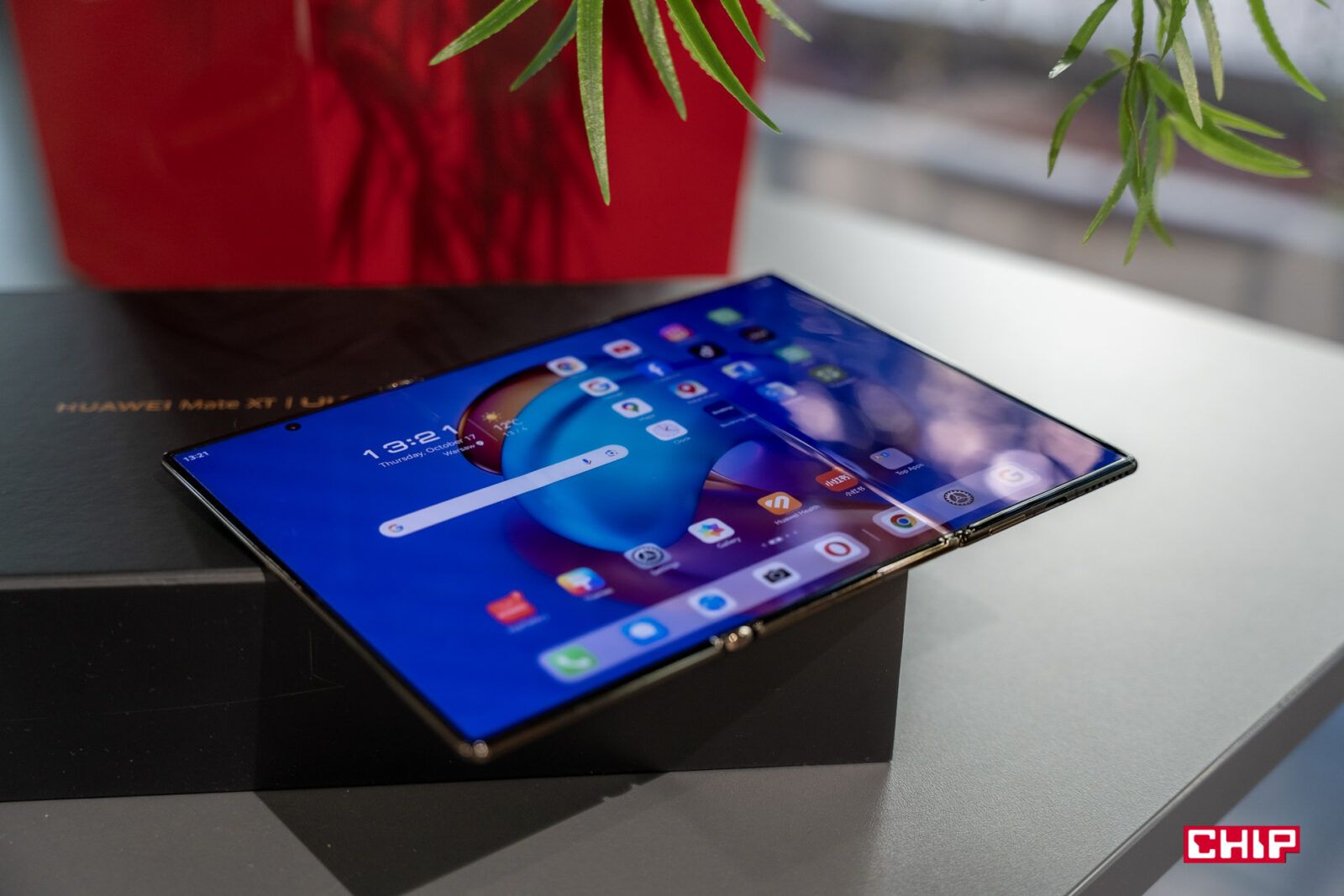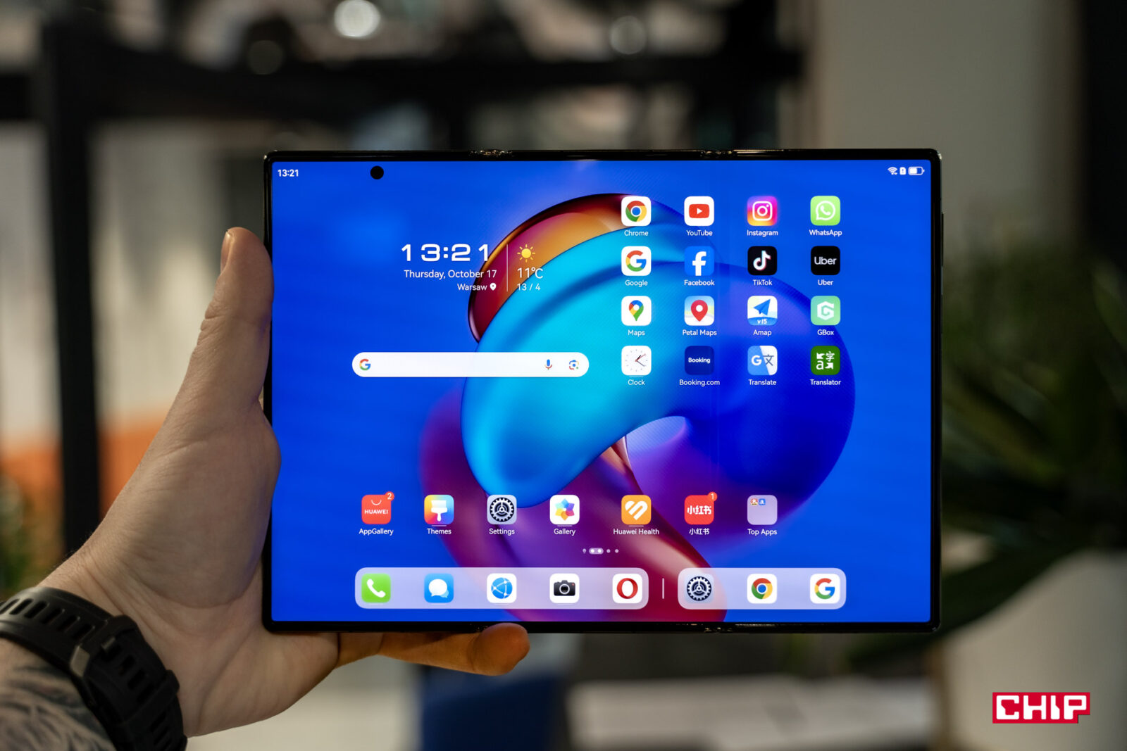 Największe wrażenie zrobił na mnie Huawei Mate XT Ultimate Design, czyli słynny już trifold. Ten smartfon miał jednak okazję już wcześniej sprawdzić Arek, więc nie będę się rozpisywał i odsyłam Was do jego artykułu — ale muszę przyznać, że składak z trzema ekranami to prawdziwy kosmos. Co również zrobiło na mnie wielkie wrażenie, to Huawei Pura X. I podobnie jak w przypadku Mate XT, jest to inne i rewolucyjne podejście do składaka.
