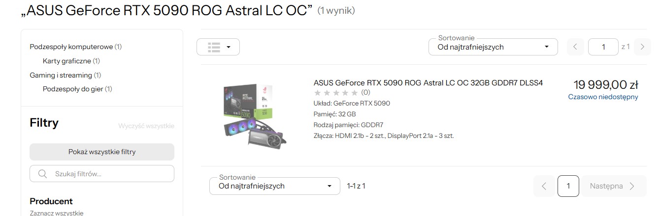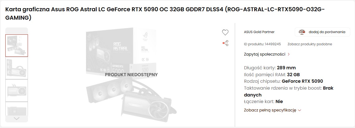 Użytkownik Reddita o nicku pagusas opublikował zdjęcie ze sklepu Microcenter w Dallas, Teksas, na którym widać półki pełne kart graficznych ASUS ROG Astral RTX 5090 z chłodzeniem cieczowym AIO. Należy zwrócić uwagę, że są to jedne z najdroższych modeli flagowego produktu Nvidii, co może świadczyć o tym, że klienci mają dość wysokich cen i wolą poczekać z zakupem.