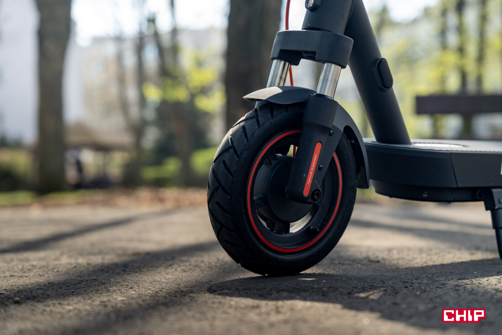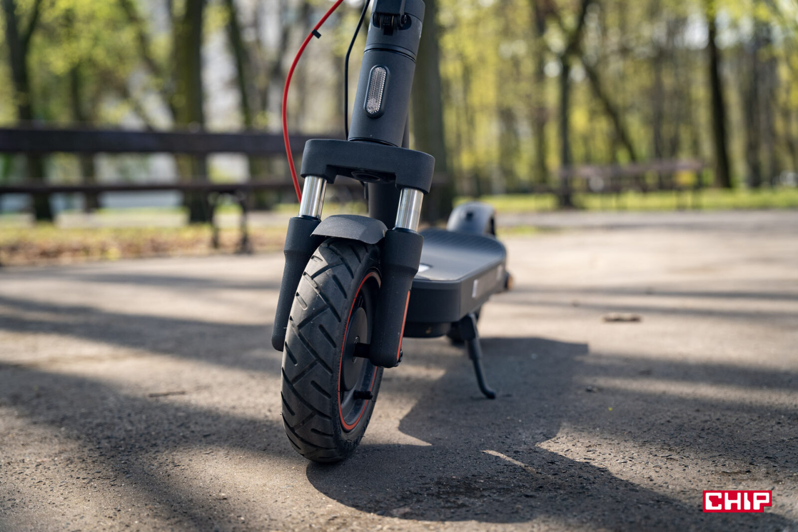 Co daje nam taka konstrukcja? Ogromny komfort podróżowania. Raczej nie ma w Polsce miasta, w którym ścieżki rowerowe są w 100% idealnie wyasfaltowane. A jazda po polbruku na hulajnodze bez amortyzatorów to mordęga. Trudno powiedzieć, czy po dłuższej podróży bardziej bolą nadgarstki, czy uderzające o siebie w trakcie jazdy zęby. W przypadku Xiaomi Electric Scooter 5 Max takich problemów nie uświadczymy i co więcej, nawet jak nieco zboczymy z drogi i przejedziemy się piaszczystą nawierzchnią to nadal będzie to komfortowe, a powiedziałbym nawet, że satysfakcjonującej.