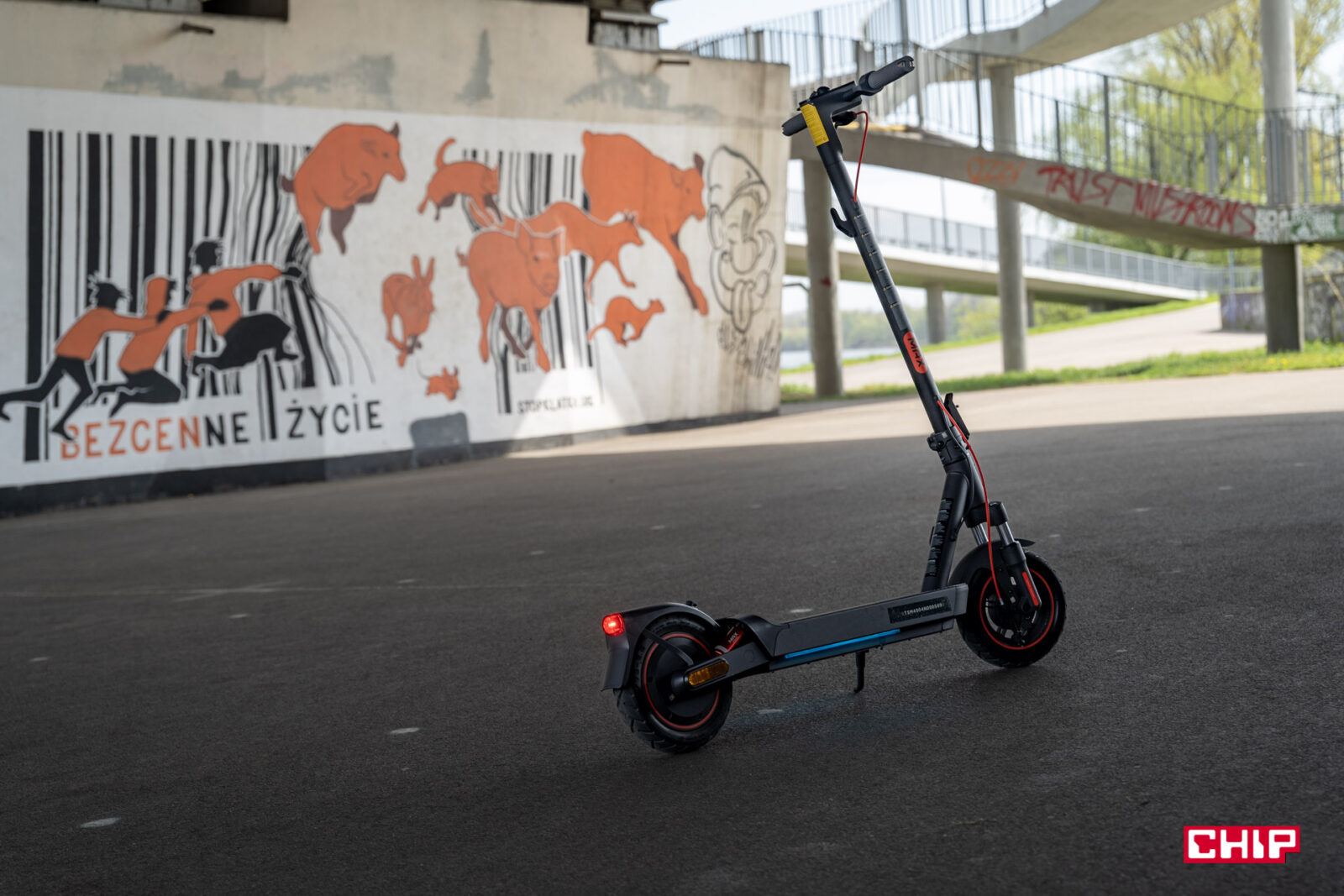 Pod względem wizualnym jest to elegancki, niespecjalnie rzucający się w oczy sprzęt. Co na pewno dla wielu osób będzie zaletą i wydaje mi się, że znajdą się tacy, dla których będzie to ważny element podczas wyboru hulajnogi. Bo przykładowo mniej krzykliwy wygląd będzie bardziej pasować do dojazdów do biura.