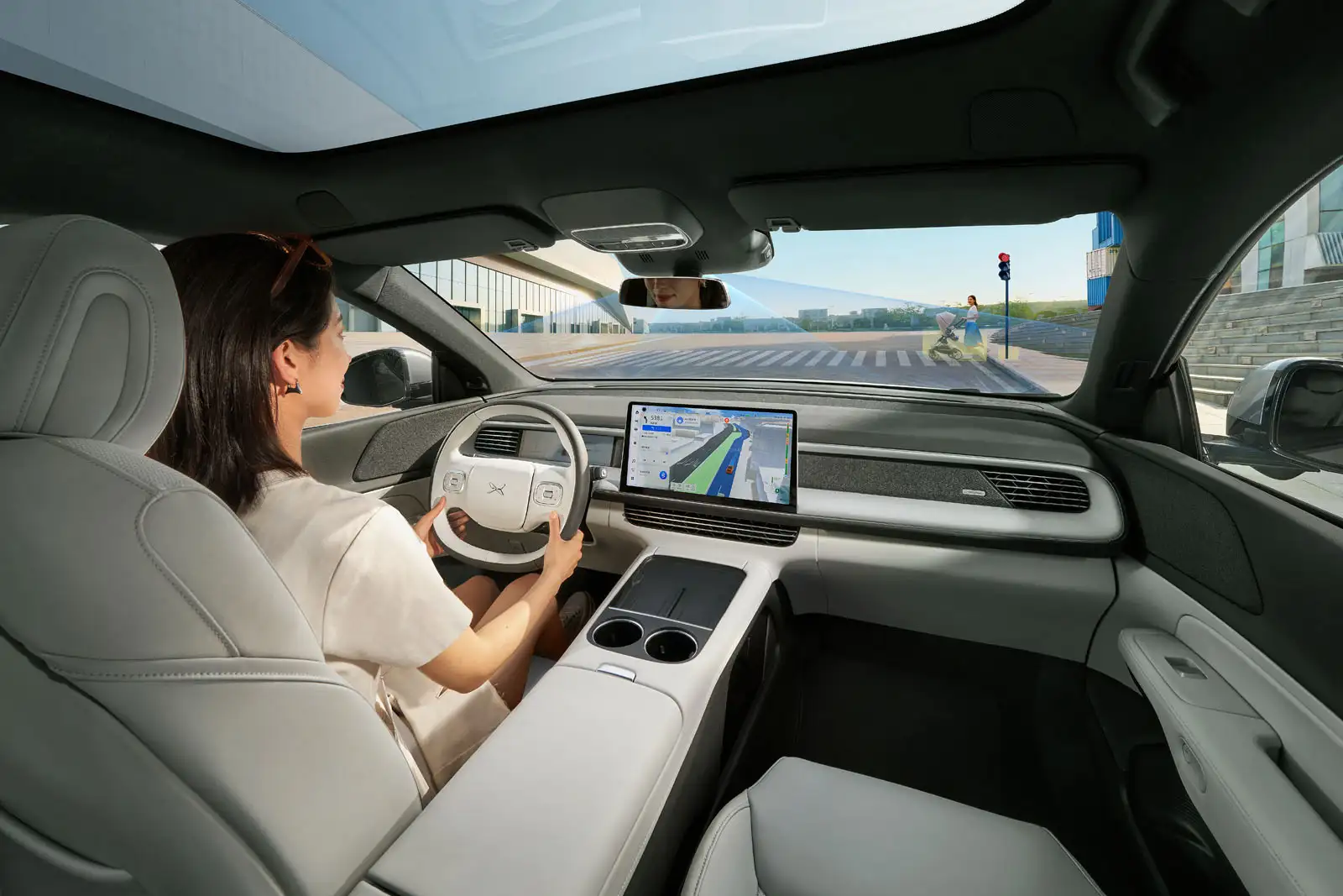 Co najlepsze nie ma tu wariantów wyposażenia. Wybieramy tylko napęd i akumulator, a reszta jest już w standardzie. Reszta, czyli m.in. Xpilot Driving (adaptacyjny tempomat, utrzymywanie w pasie ruchu, aktywna zmiana pasa ruchu), asystent parkowania z kamerą 360, szereg systemów antykolizyjnych i monitorowania otoczenia w trakcie jazdy, trzy ekrany – kierowcy o przekątnej 10,25 cala, główny o przekątnej 14,96 cala i pasażera o przekątnej 14,96 cala (niewidoczny dla kierowcy w trakcie jazdy), bezprzewodowy Android Auto i Apple CarPlay. Ogólnie większość bajerów, jakie może mieć współczesne auto, a do tego rozbudowany system nagłośnienia o szczytowej mocy ponad 2000 W.