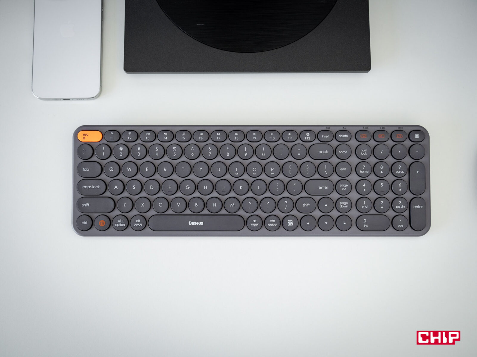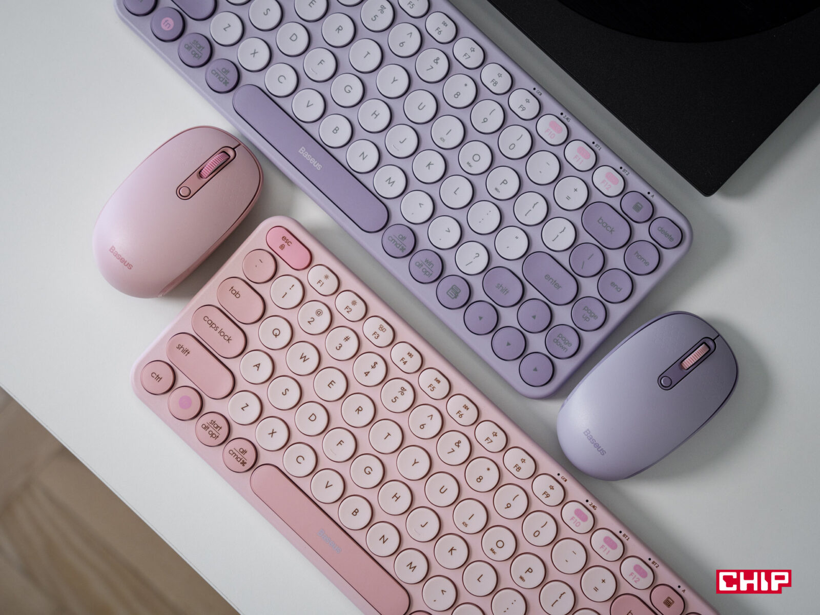 Poza tym są to urządzenia identyczne – podstawą są ciche przełączniki membranowe o niskim skoku i dużej wytrzymałości (Baseus podaje 10 mln przełączeń). Łączność zapewnia łącze radiowe 2,4 GHz lub interfejs Bluetooth, dzięki któremu klawiatura może pracować nie tylko z komputerem, ale także z tabletami, a nawet ze smartfonami.